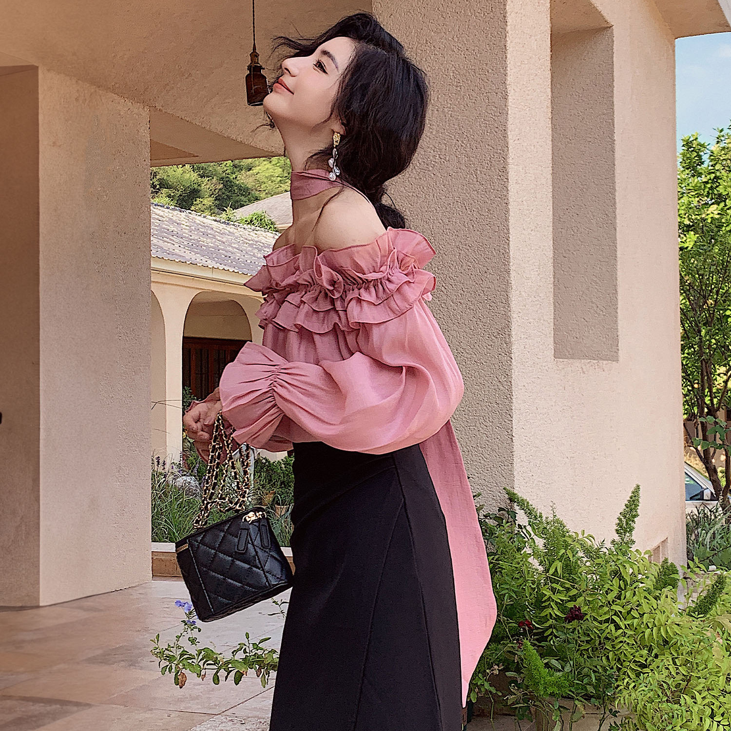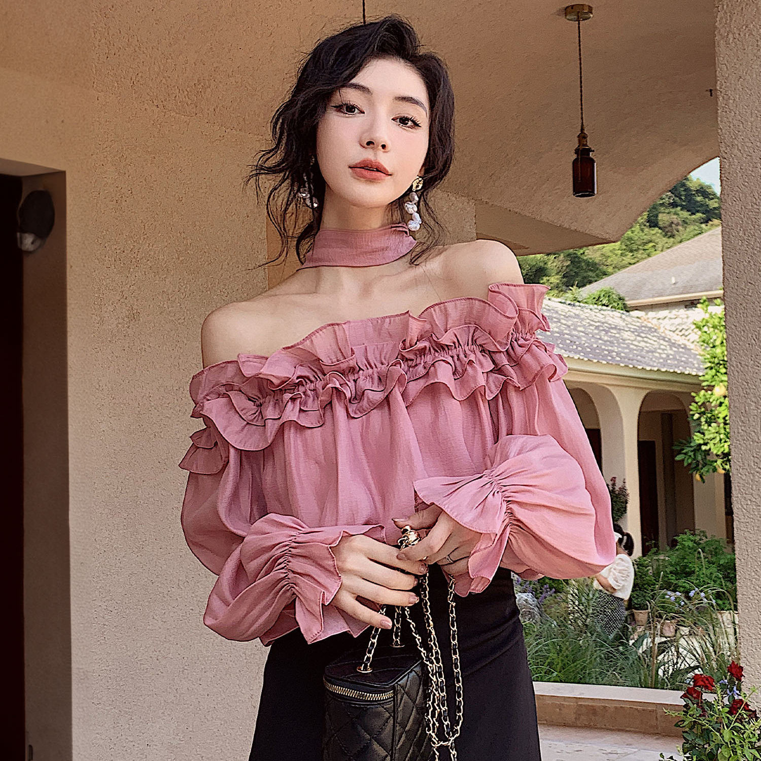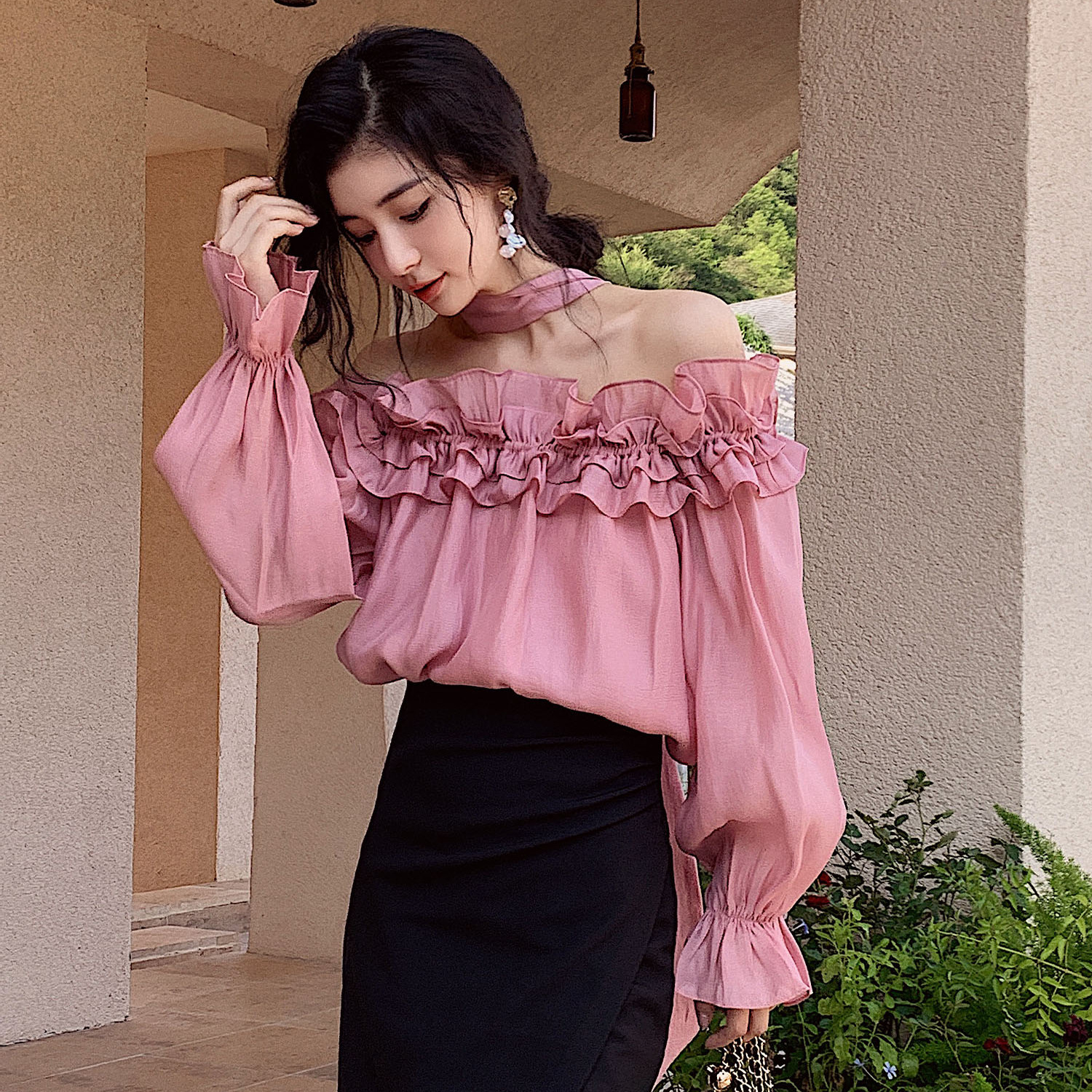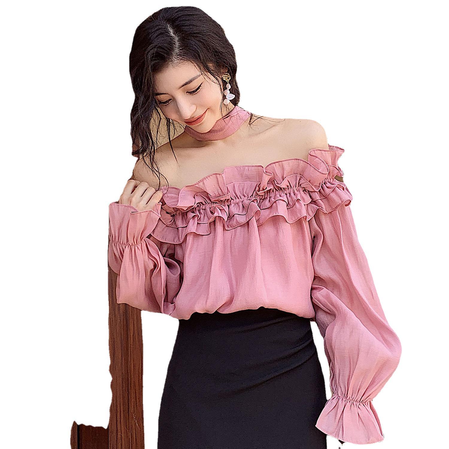 | nameOriginal | New Style Beautiful Small Shirt Fairy Air Leaky Collar Lotus Leaf Off-shoulder Sun Protection Shirt Pink French Top |