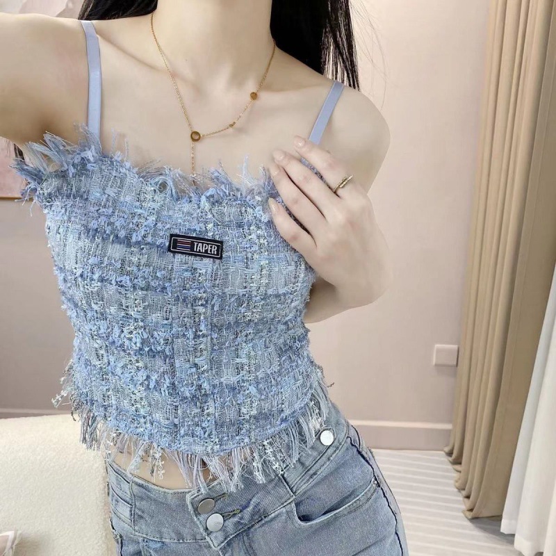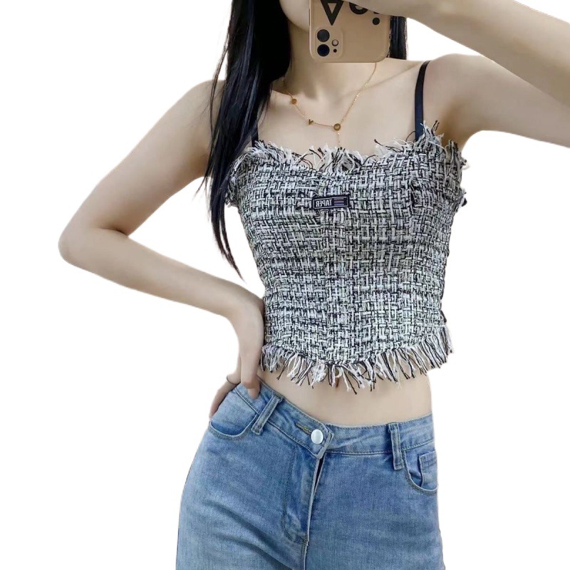 New Style Chanel Style Design Tassel Beauty Back Camisole Women’s Belt Chest Pad Inner Wearing Outer Wearing Pure Style Spice Girl Top