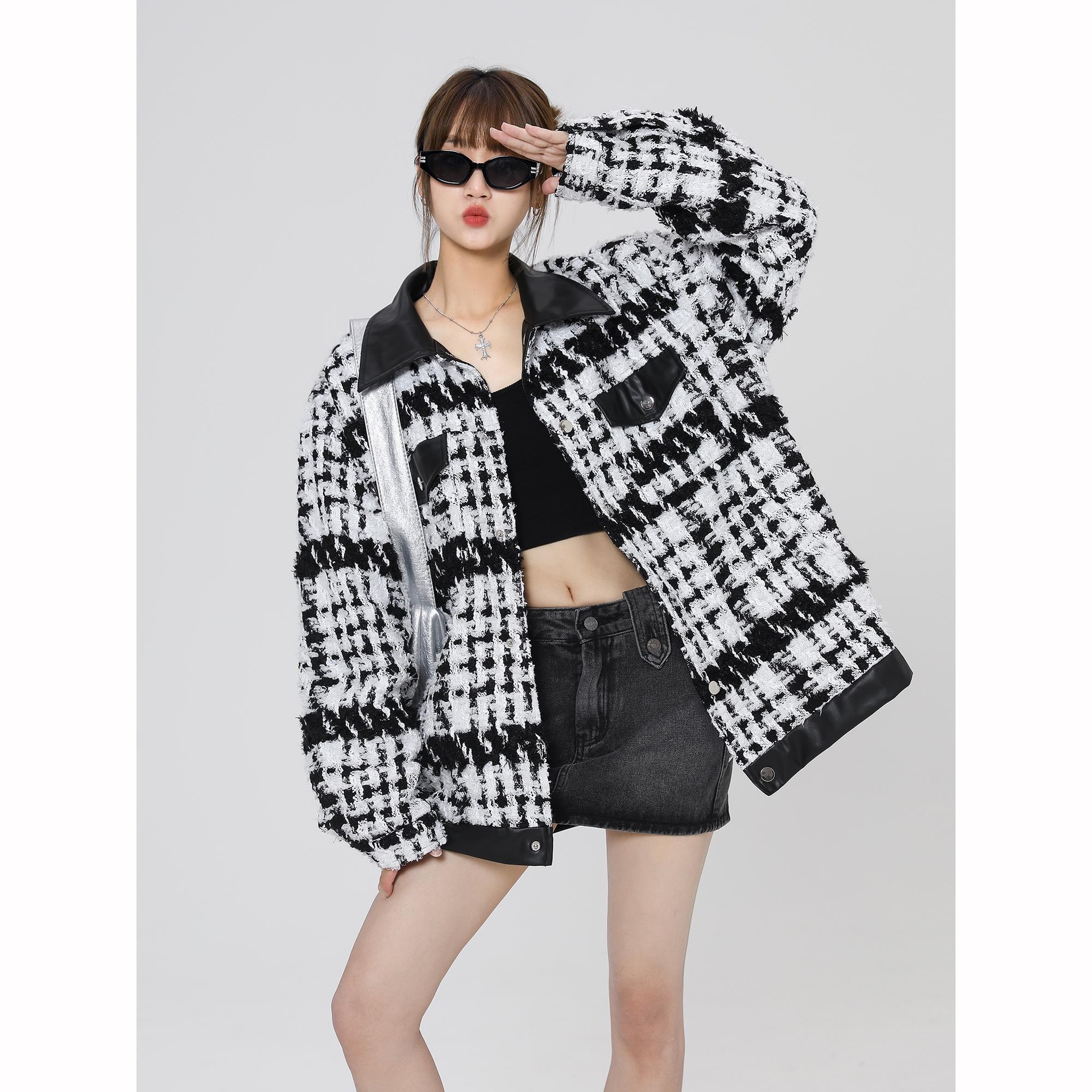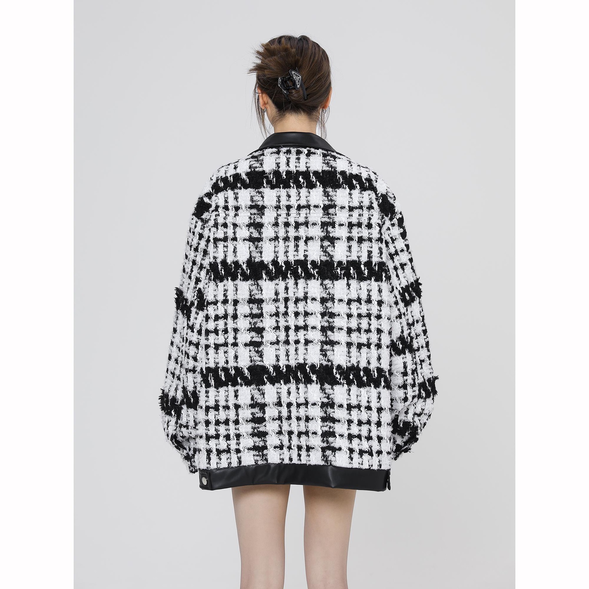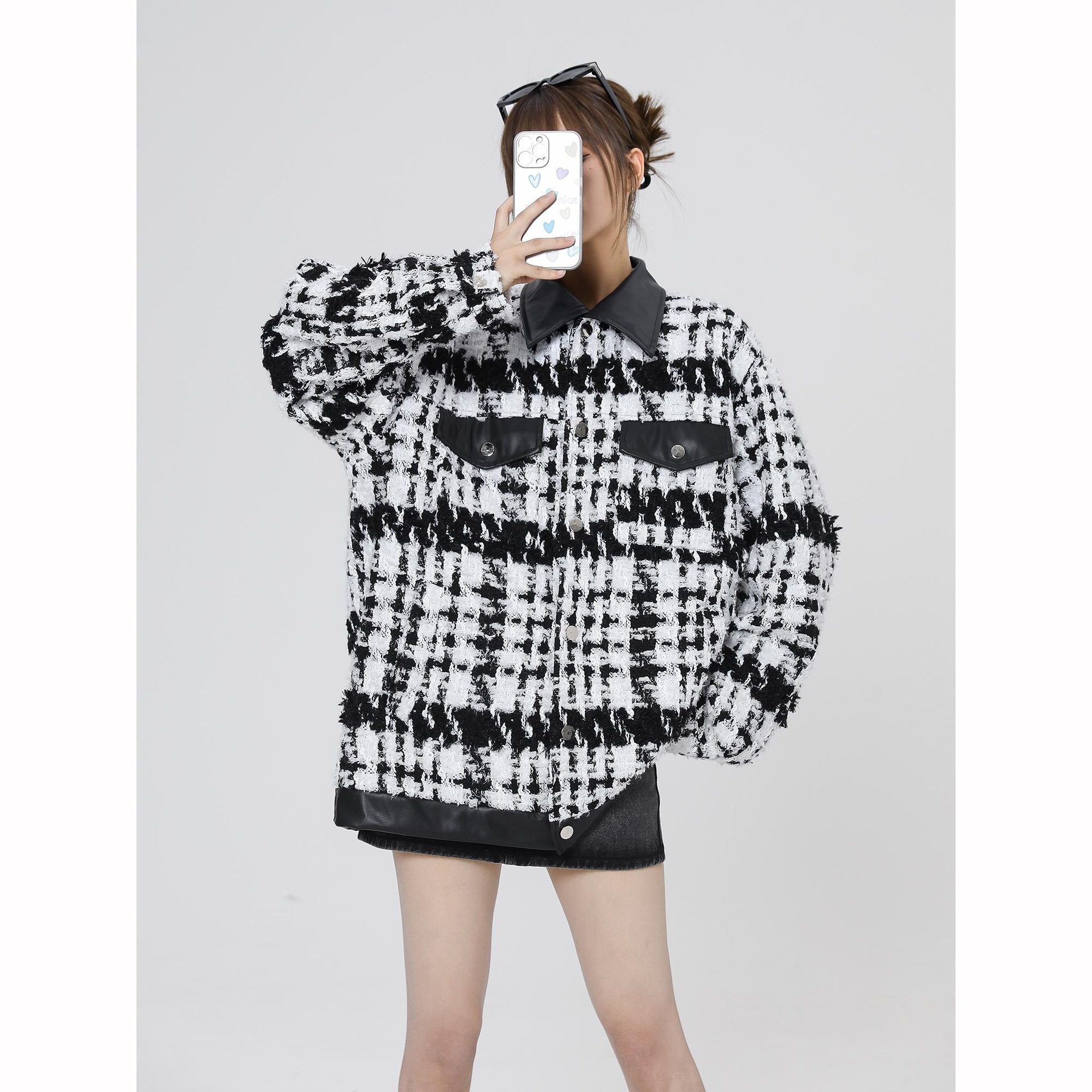 | nameOriginal | New Style Chanel Style Woven Plaid Coat Women's 2024 Spring Stitching Single Breasted Loose Couple's Fashionable Jacket |