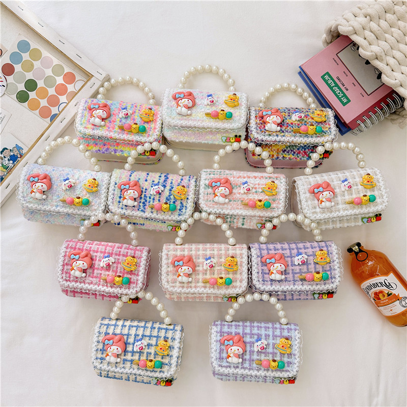 | nameOriginal | New Style Children's Small Square Bag Fashion Girl's Princess Merlotti Color Contrast Chain Shoulder Bag Pearl Handbag |