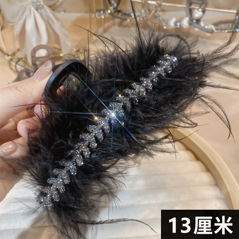| nameOriginal | New style clip, high-end feather grab clip for the back of the head, feather wheat ear hair clip, hair clip, ostrich feather shark clip |