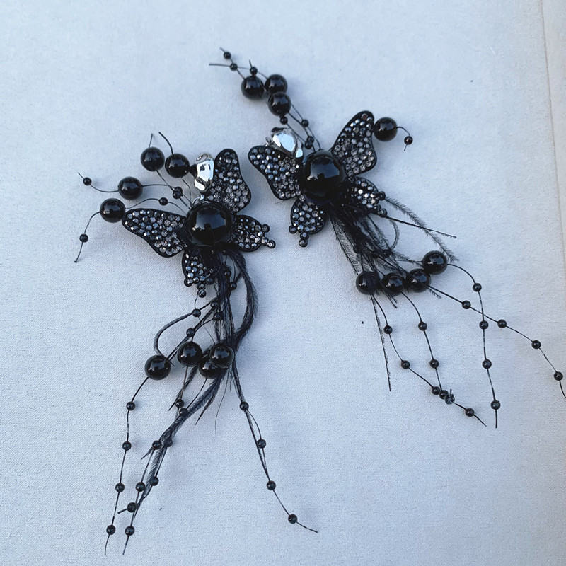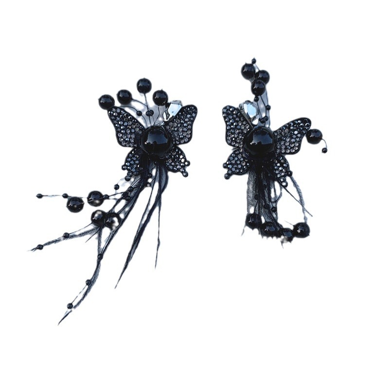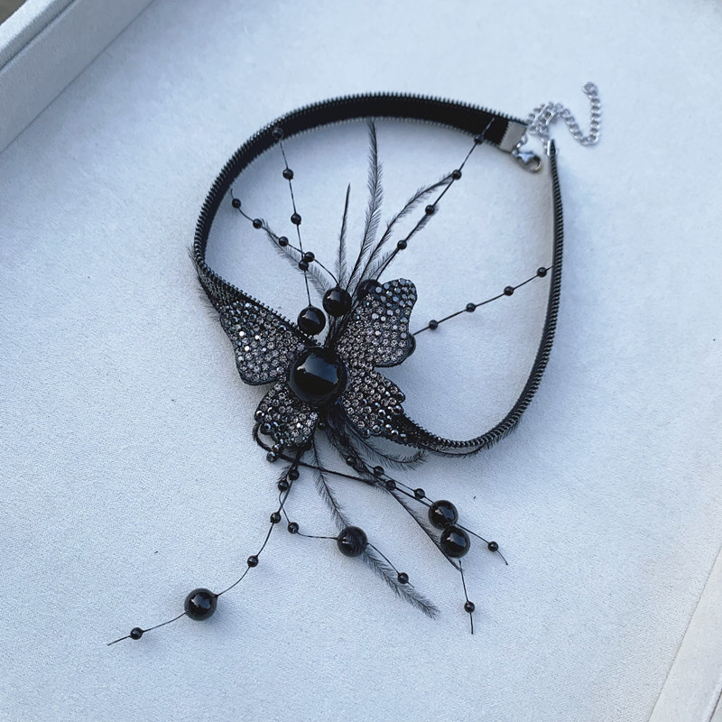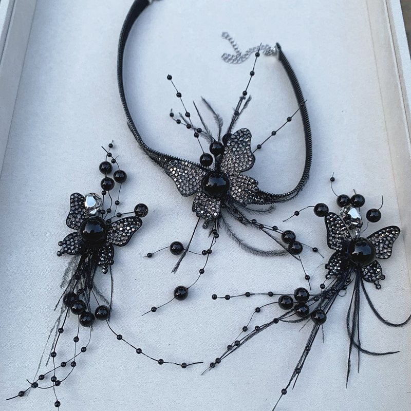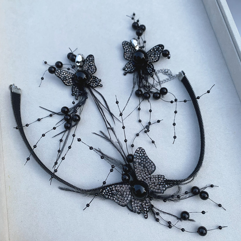 | nameOriginal | New Style Distinctive Black Flash Diamond Feather Butterfly Shape Neck Chain Earrings Set French Black Dress Accessories |
