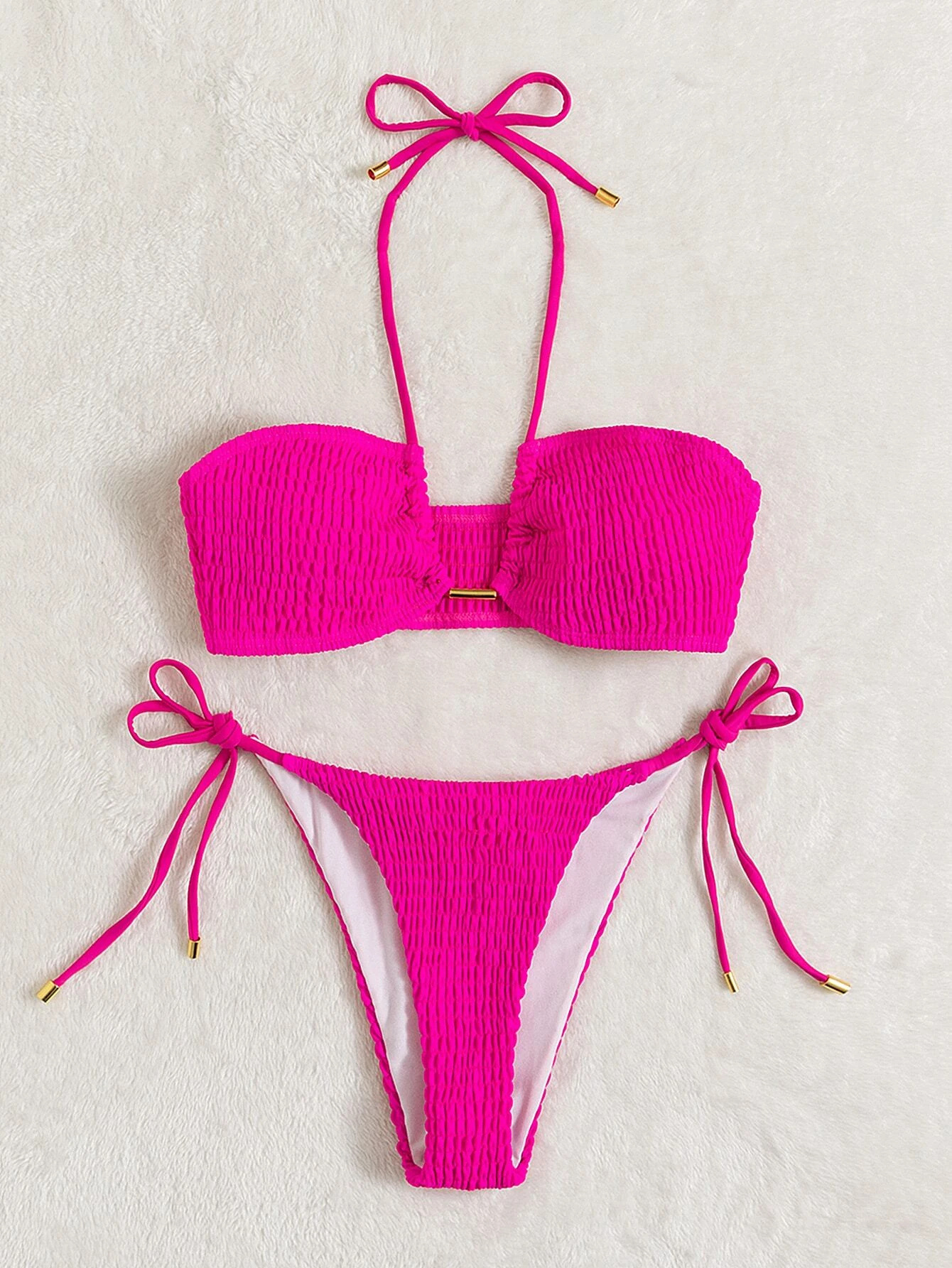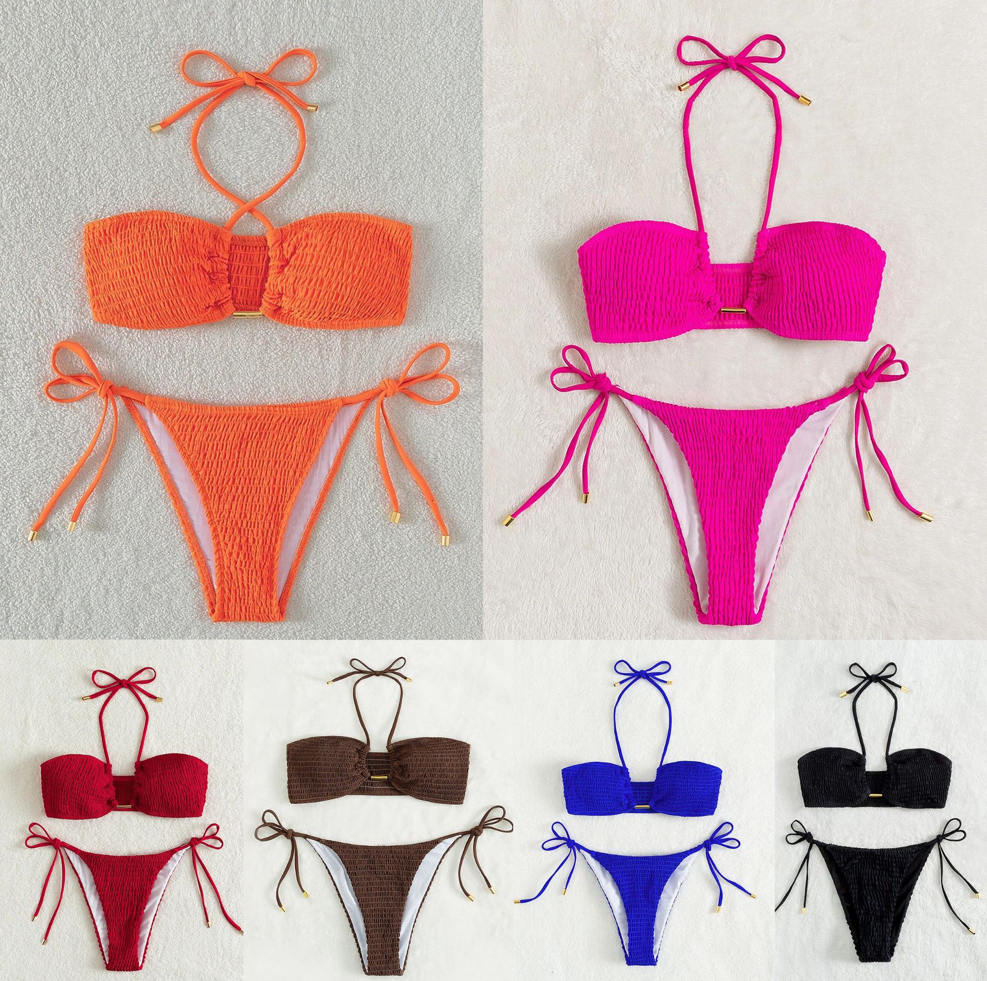 New Style Fabric Fashion Split Lace Swimsuit Women Solid Color Sexy BIKINI European and American Swimwear