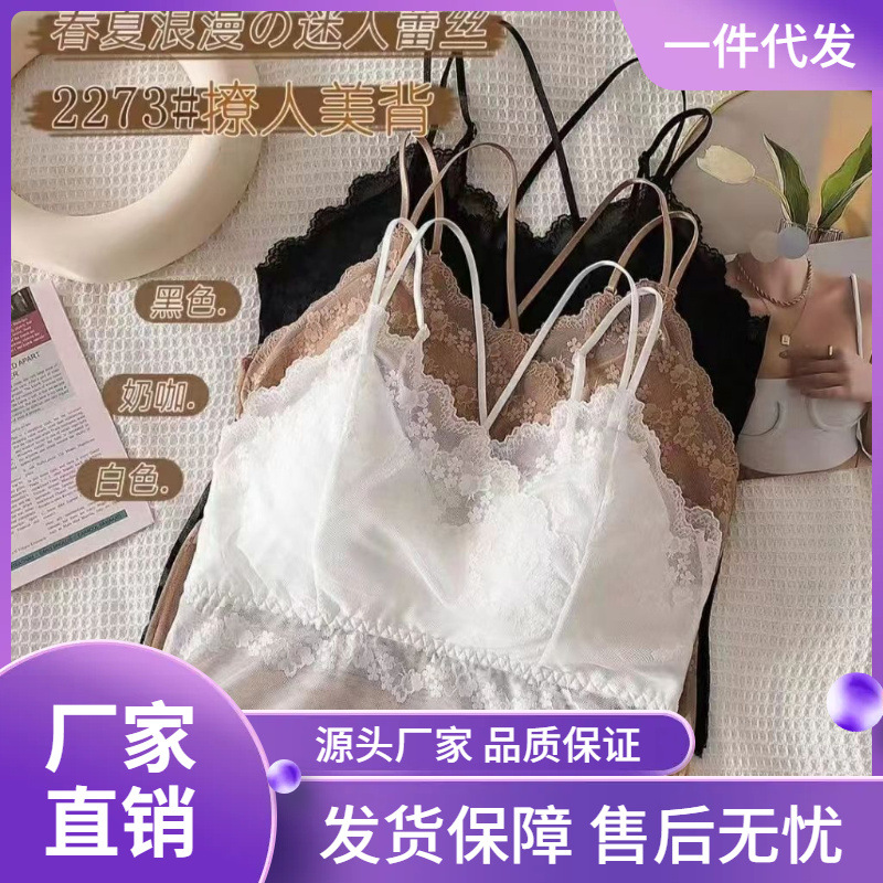 New Style Lace Beautiful Back Cross Camisole Vest Summer Integrated Chest Pad Inner Wearing Outer Wearing Sexy Base Camisole Vest