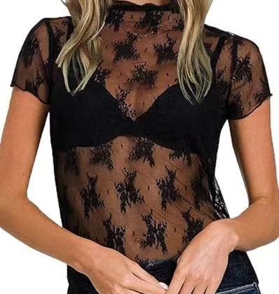 | nameOriginal | New Style Lace Mesh All-match Base Shirt Sexy Spice Girl Lace Short-sleeved Top High Elastic T-shirt Women's Clothing |
