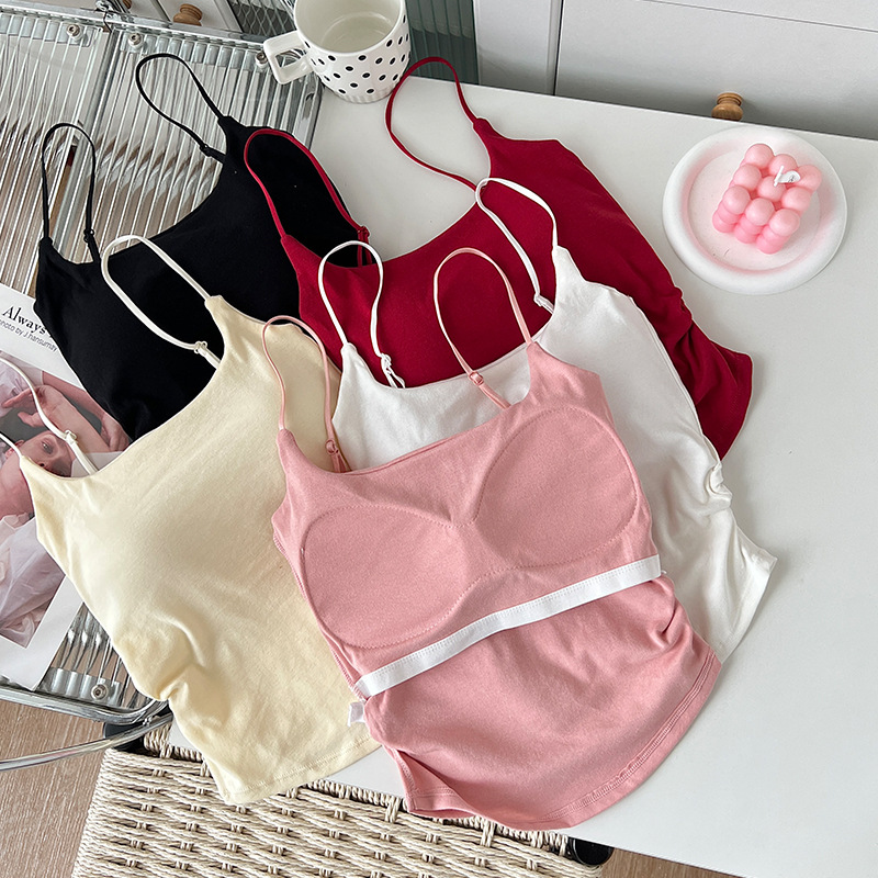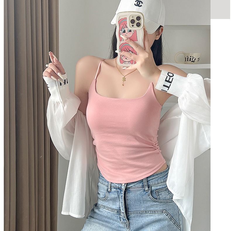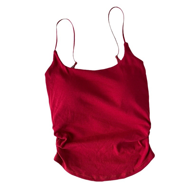 | nameOriginal | New Style Pure Sweet and Spicy Design Pleated Camisole Women's Fixed Chest Pad Inner Wear Outer Wear Slim-fit Beautiful Back Top |