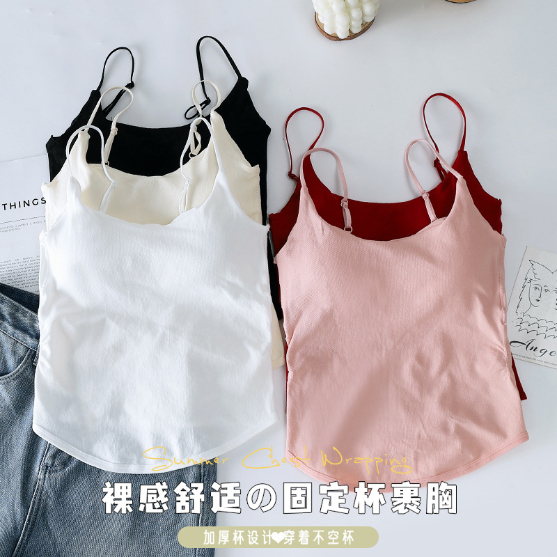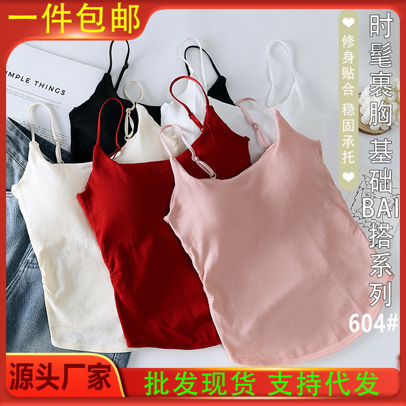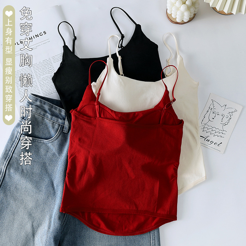 | nameOriginal | New Style Pure Sweet and Spicy Design Pleated Camisole Women's Vest with Chest Pad Inner Wear Outer Wear Slim-fit Beautiful Back Top for Women |