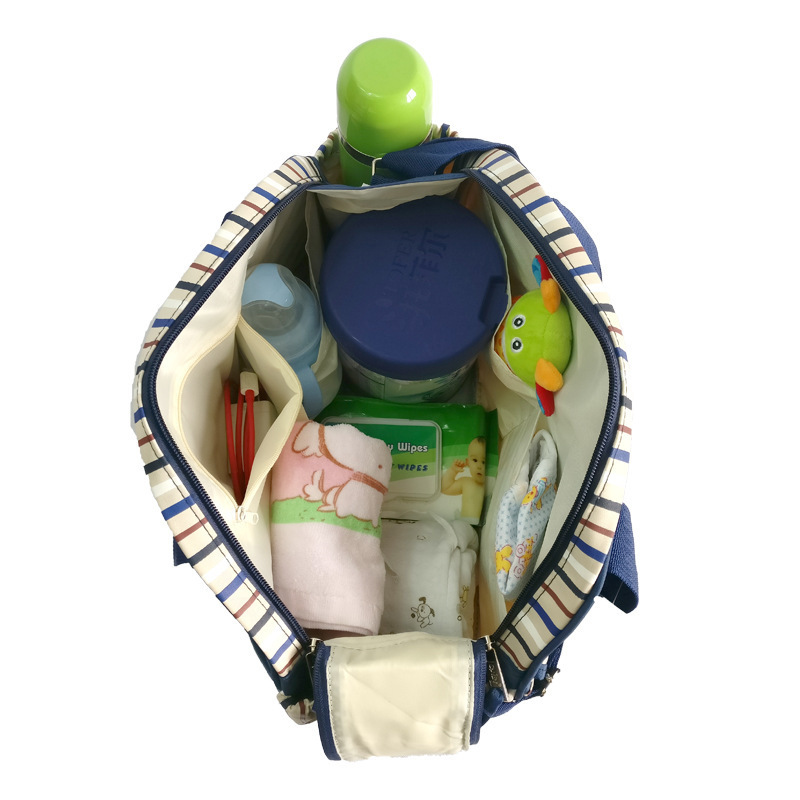 New Style Striped Crossbody Mummy Bag Double Shoulder Multi-function Large Capacity Just-to-be Bag Outgoing Maternal and Baby Bag Mummy Bag Portable