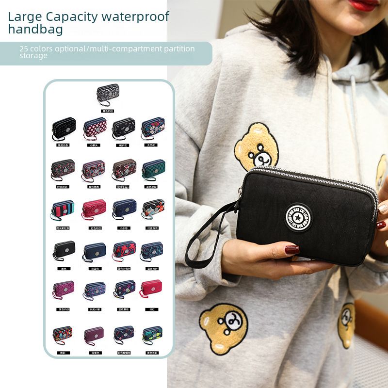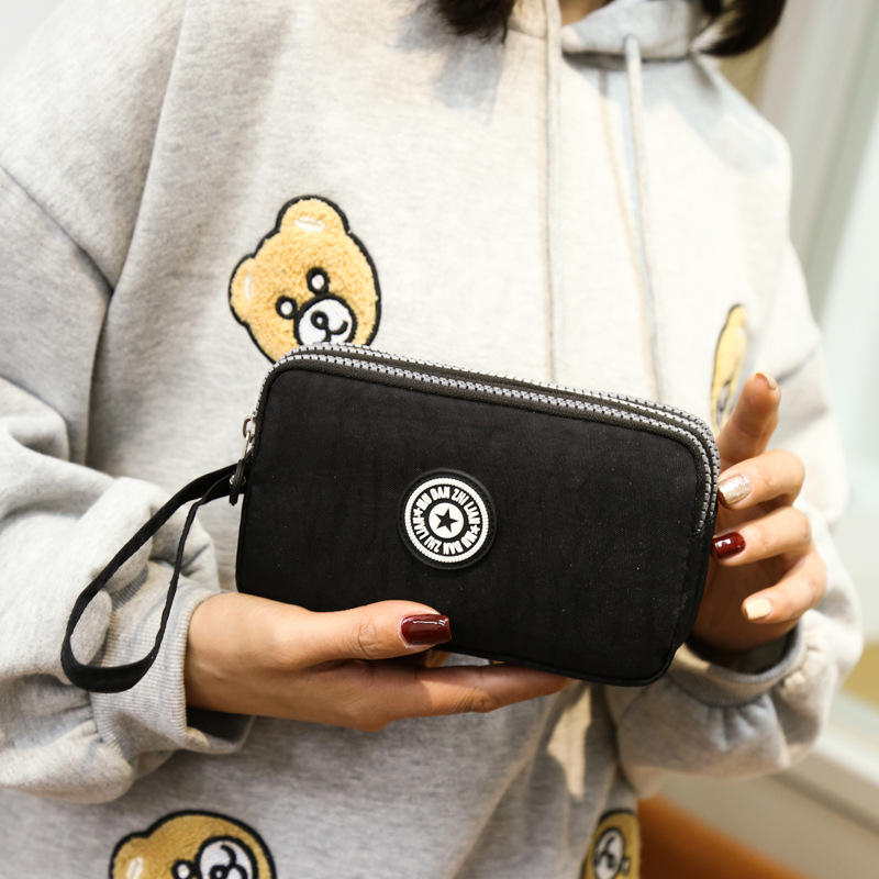 New Style Washed Denim Women’s Three-Layer Zipper Coin Purse Cosmetic Bag Mobile Phone Bag Hand Carrying Bag Small Square Bag