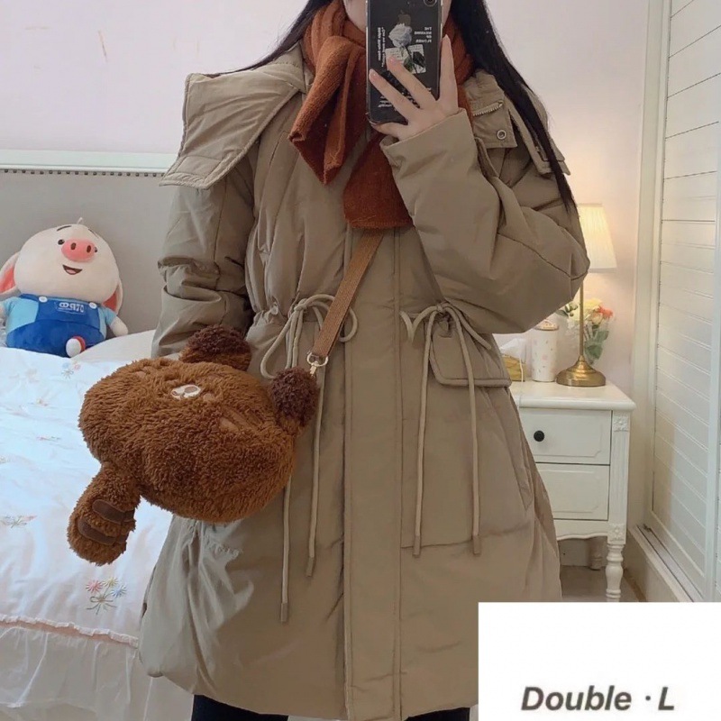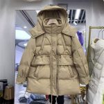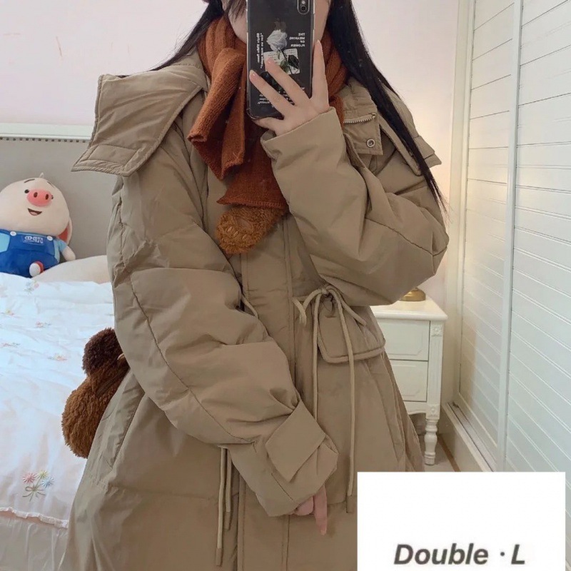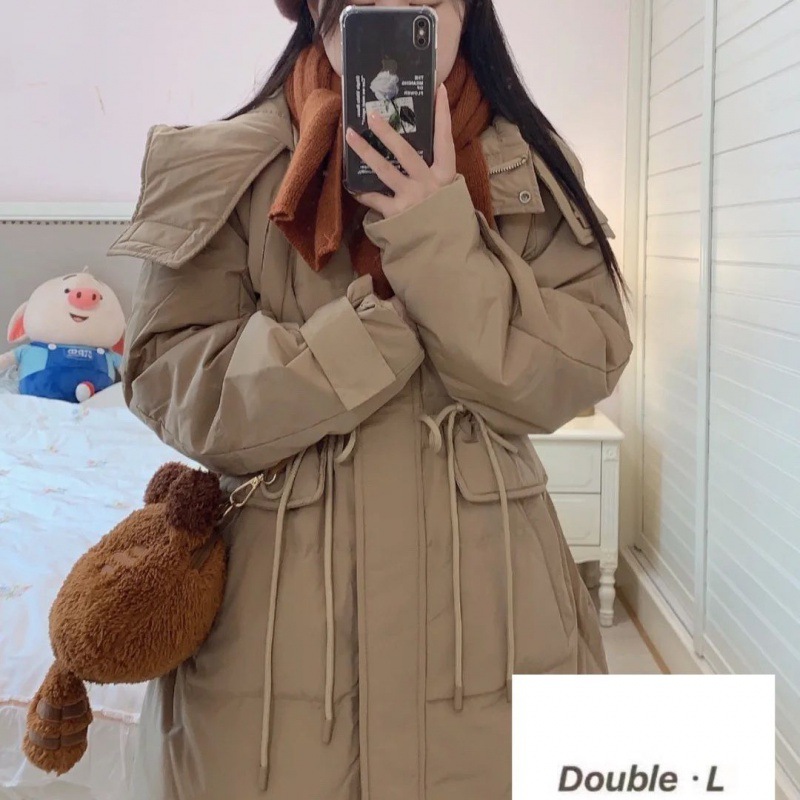 New style workwear down jacket For Women Red mid-length Dongdaemun waist-tight hooded thickened white duck down short