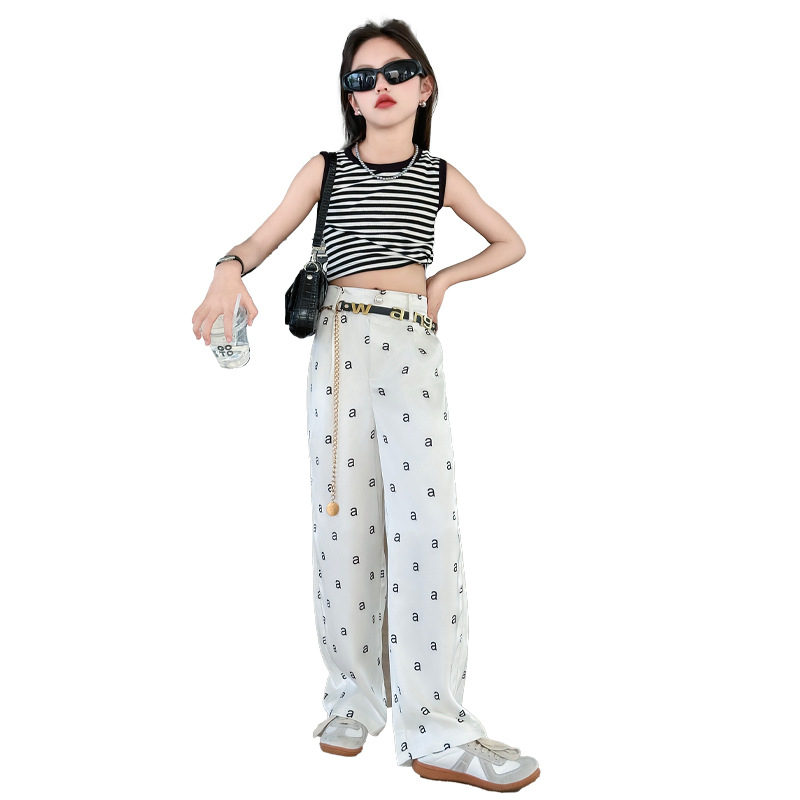 | nameOriginal | New suit Vest Girl's Korean Style Summer Thin Trendy Printed Western Style Straight Leg Pants Fashionable Striped Letter 2024 |