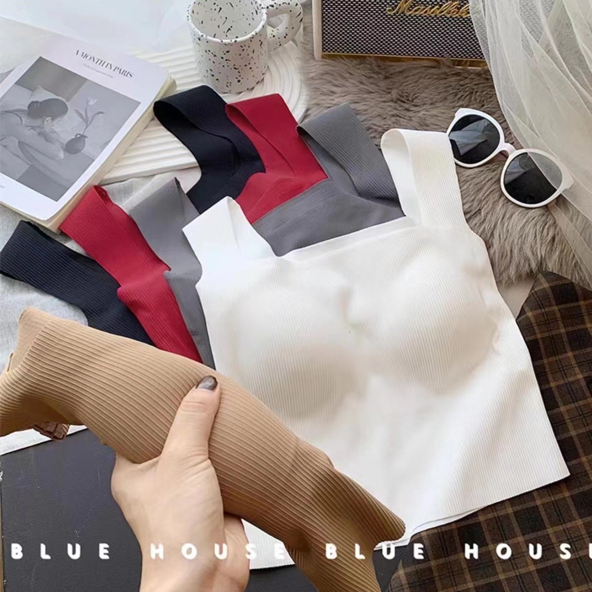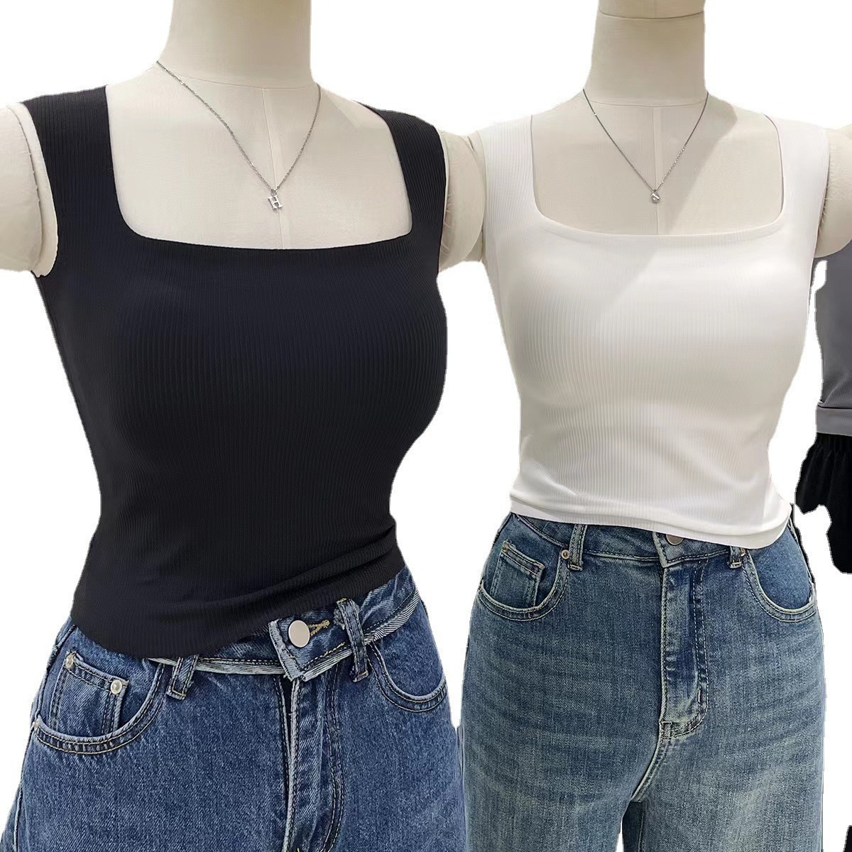 New Summer bra Thread One-piece Fixed Cup Chest Pad Beautiful Back Outer Wear Spice Girl Wrap Chest Square Collar Vest Underwear