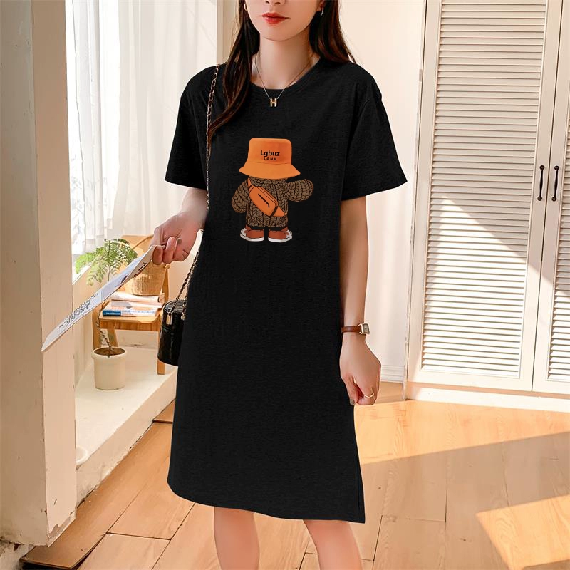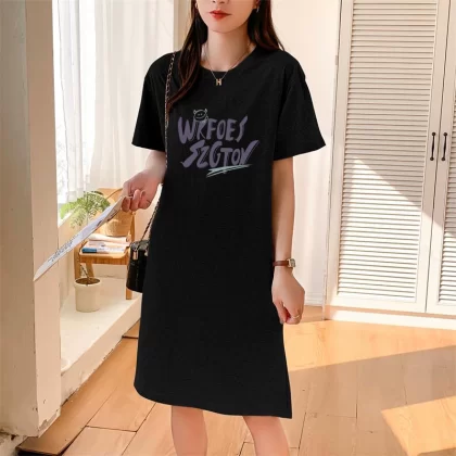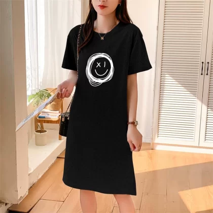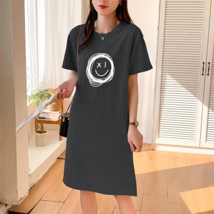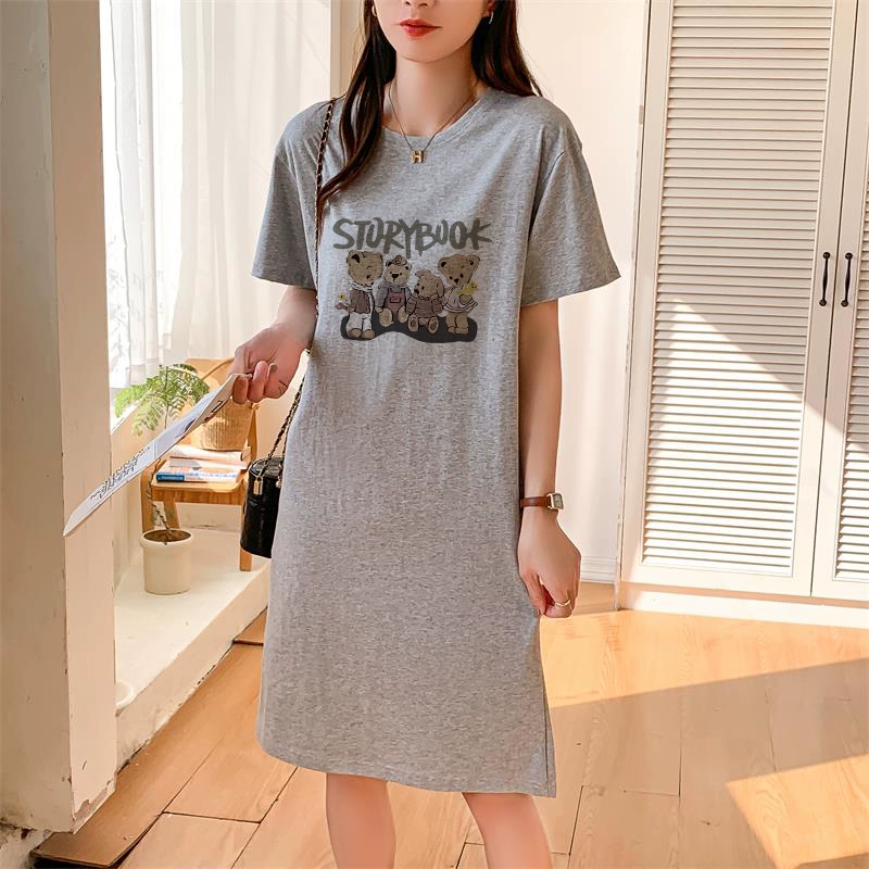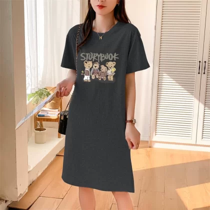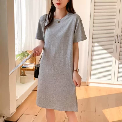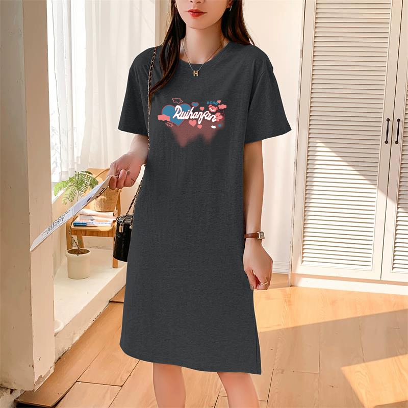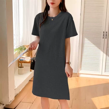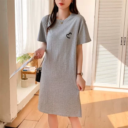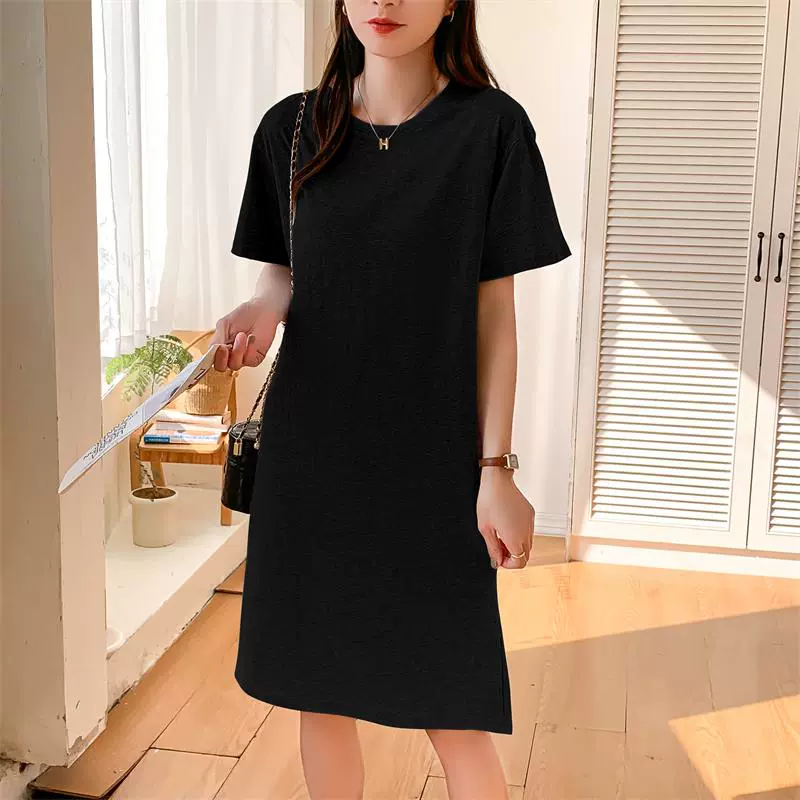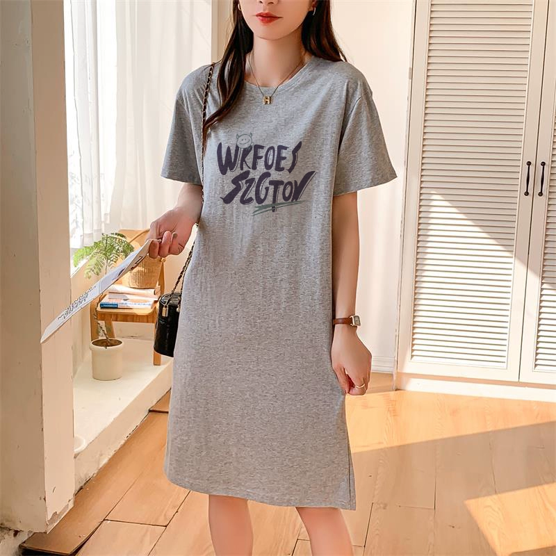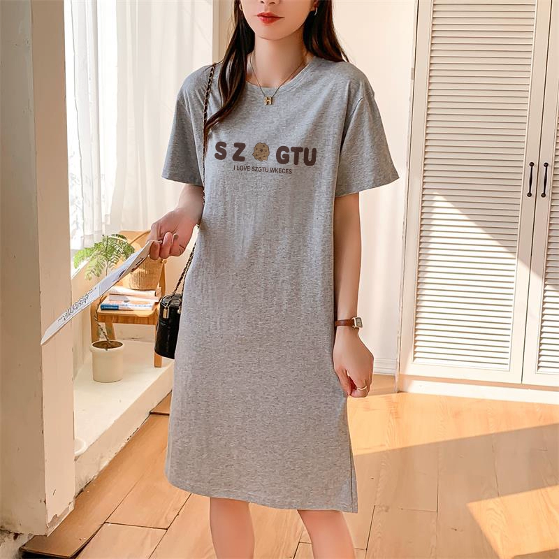Summer new leisure covering the belly over the knee and short -sleeved dress