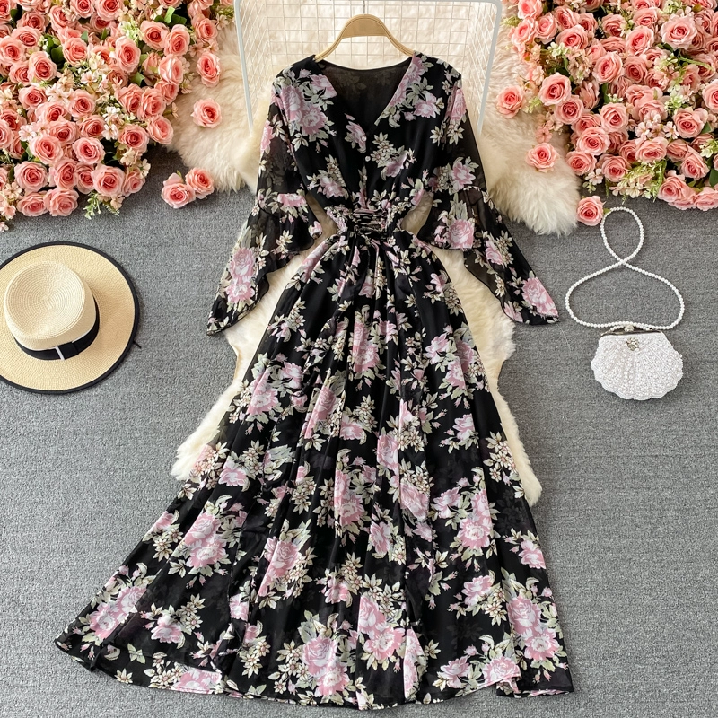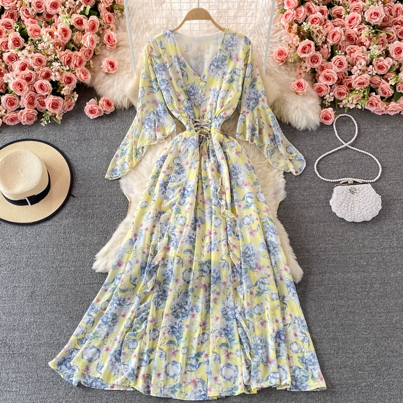 | nameOriginal | New summer chiffon dress with bell sleeves and wide hem |