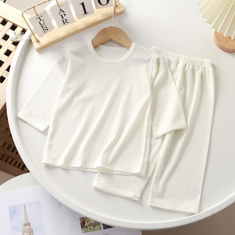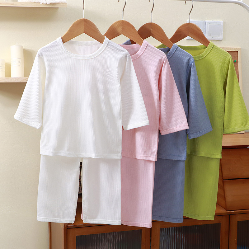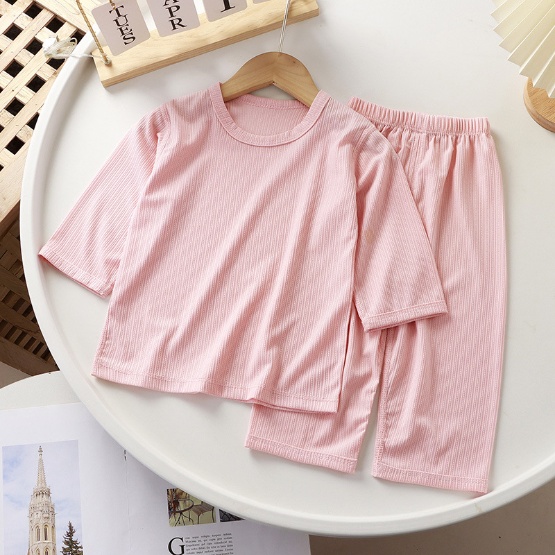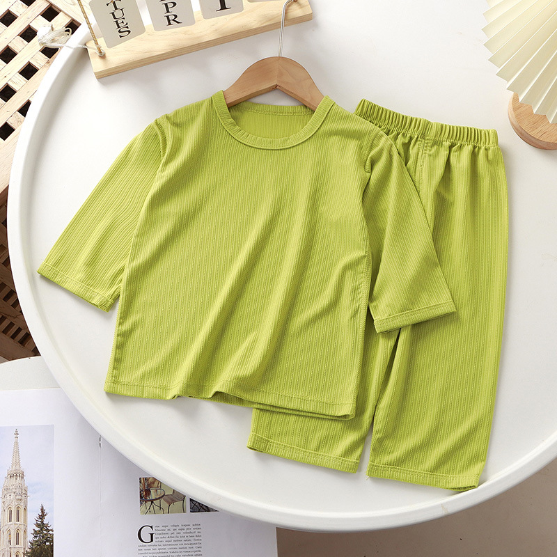 | nameOriginal | New Summer Children's Home Suit Solid Color Boys and Girls Thin Boneless Cropped Pajamas Pajamas Casual Set |