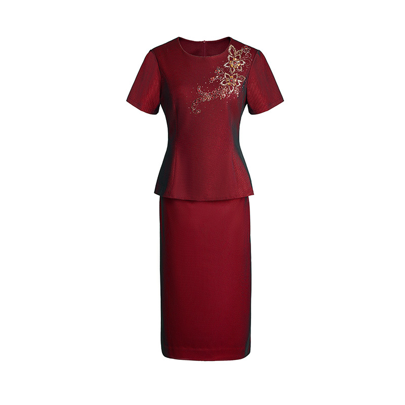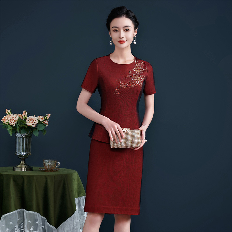 | nameOriginal | New Summer Fashion Elegant Round Neck Handmade Beaded Dress Thin Slim Waisted Red Middle-aged Mother Dress |