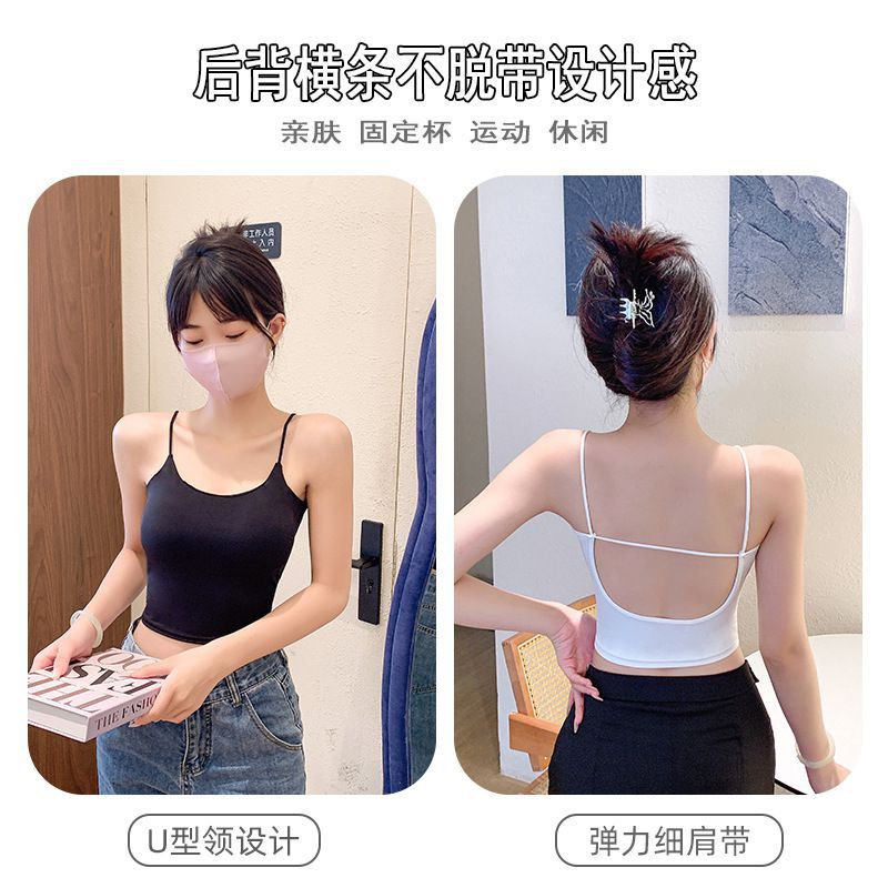 New Summer Ice Silk Camisole Spice Girls’ Inner Wear with Chest Pad Sports Beauty Back Underwear Women’s Outer Wear Short Tube Top
