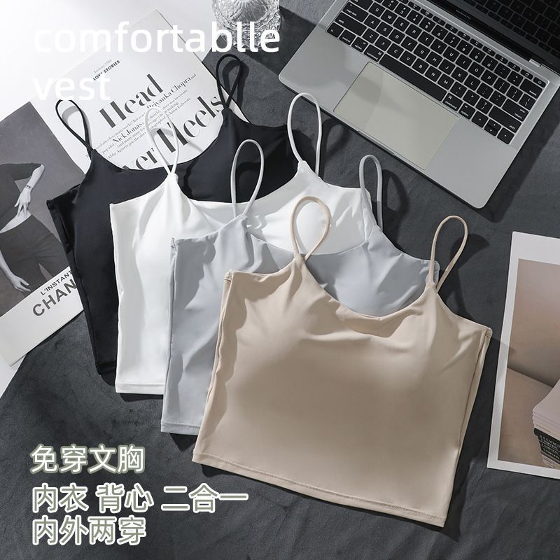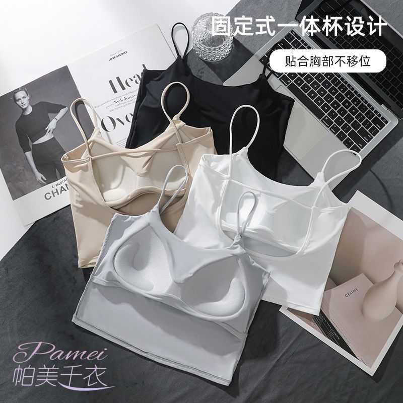 New Summer Ice Silk Camisole Spice Girls' Inner Wear with Chest Pad Sports Beauty Back Underwear Women's Outer Wear Short Tube Top