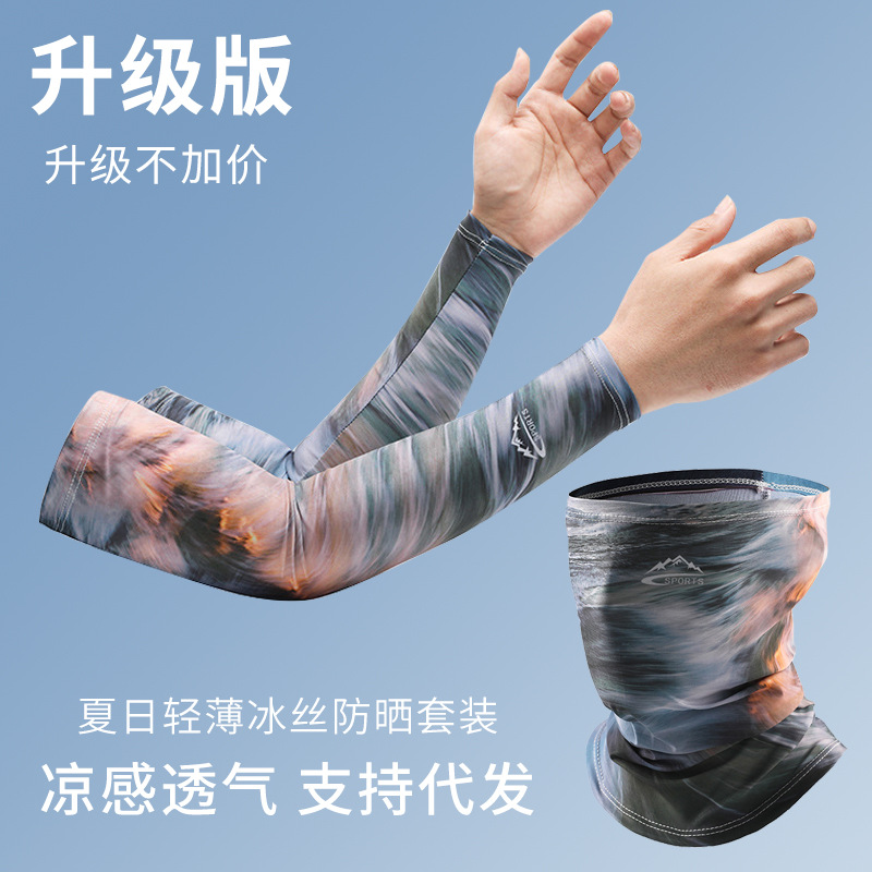 New summer ice silk sunscreen suit outdoor riding arm sunscreen ice sleeve UV protection ice silk mask wholesale
