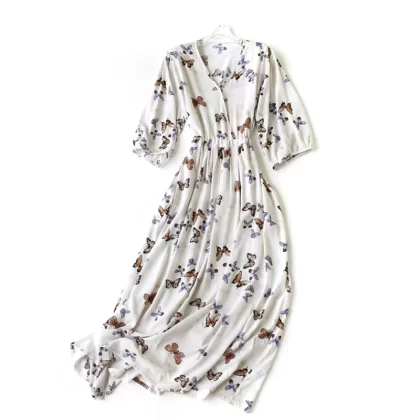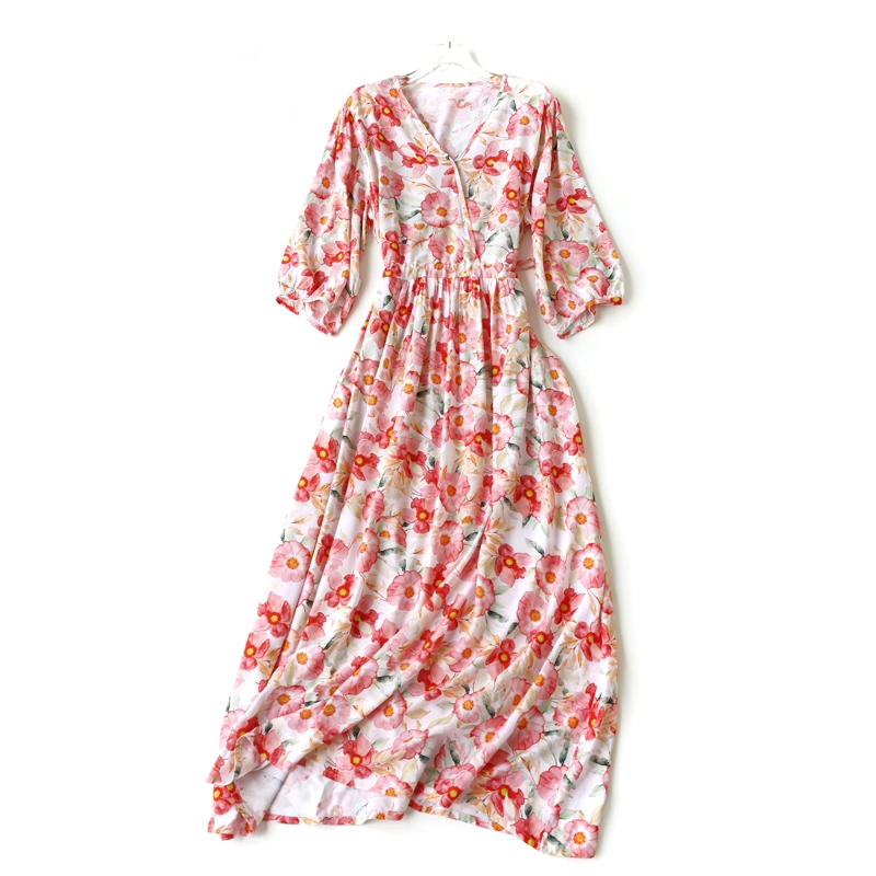 | nameOriginal | New summer loose V-neck slim cotton silk dress |