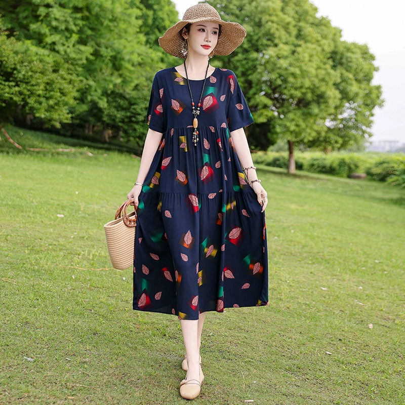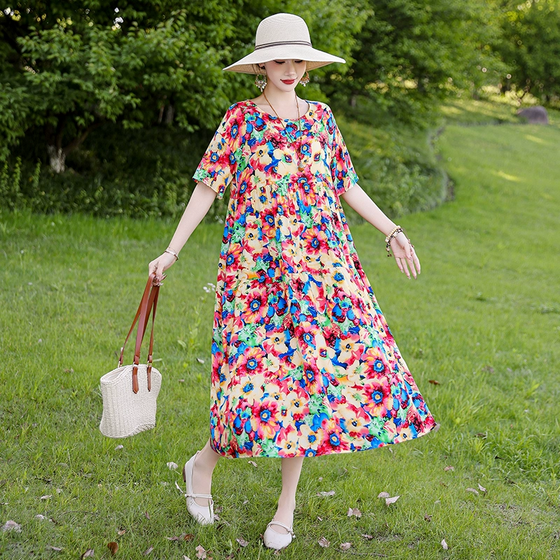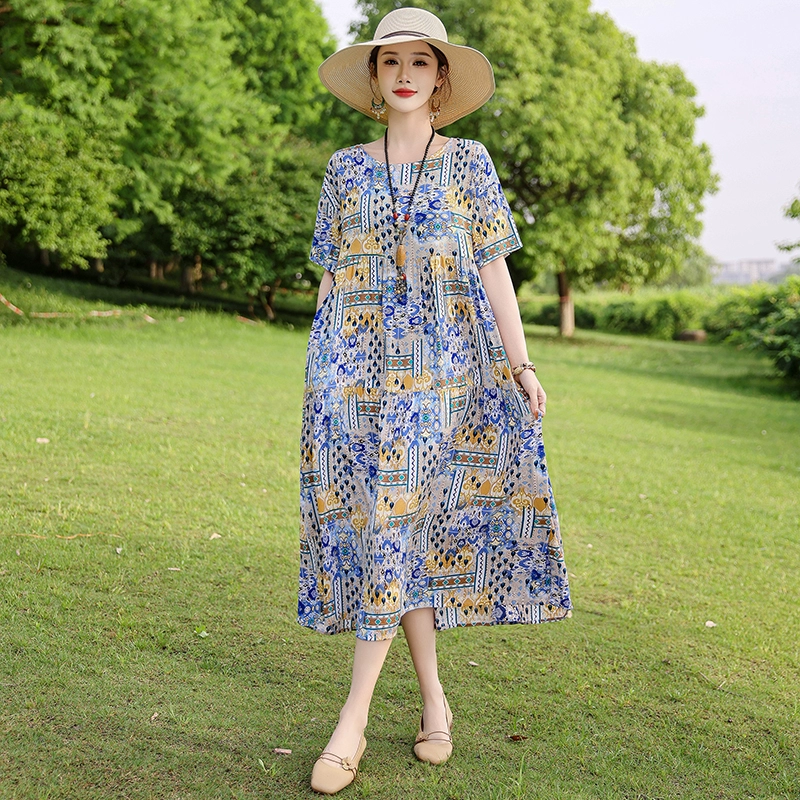 | nameOriginal | New summer style loose and slim cotton silk dress for middle-aged people |