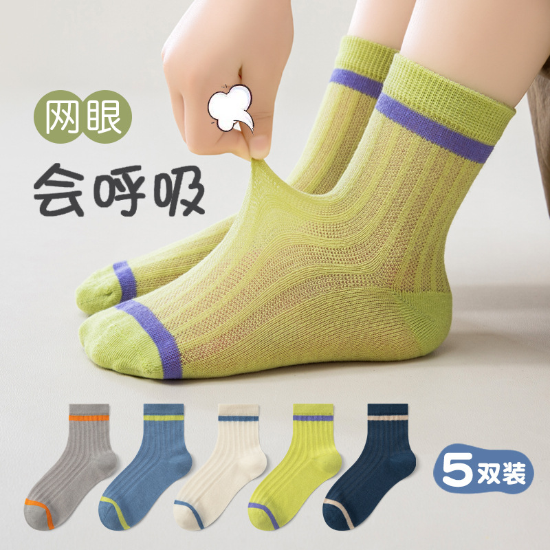 | nameOriginal | New summer thin children's mesh socks boys socks breathable deodorant sports socks large children boneless tube socks |