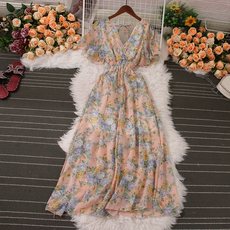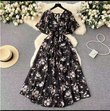 | nameOriginal | New summer V-neck chiffon dress with wide hem and short sleeves |