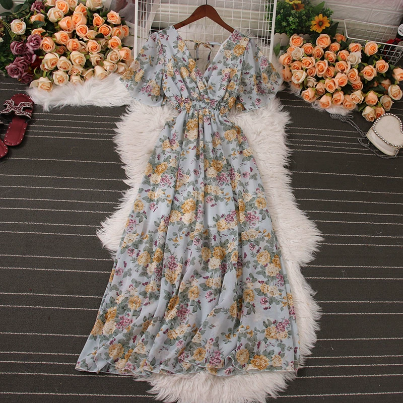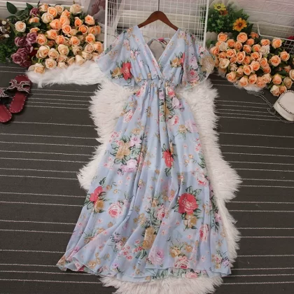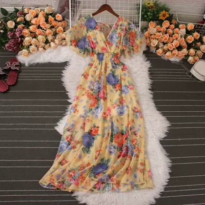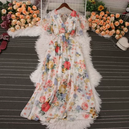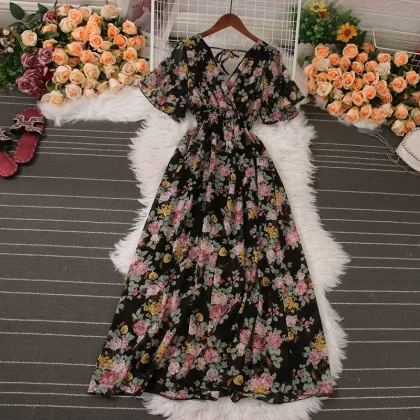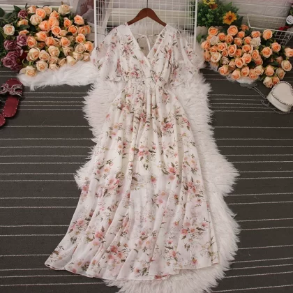 | nameOriginal | New summer V-neck chiffon dress with wide hem and short sleeves |