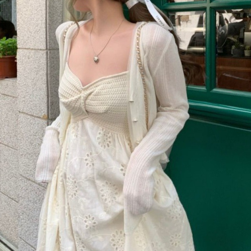 | nameOriginal | New Sunscreen Knitted Cardigan Top Women's French Pure Desire Style Strapless Long Dress with Sling Elegant dress Two-piece Set |