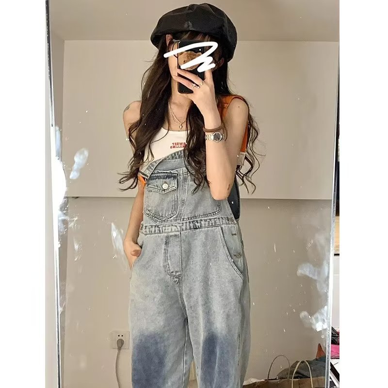 | nameOriginal | New super hot girl style loose casual Denim suspender pants women's 2024 spring and summer Gradient Design wide-leg pants |