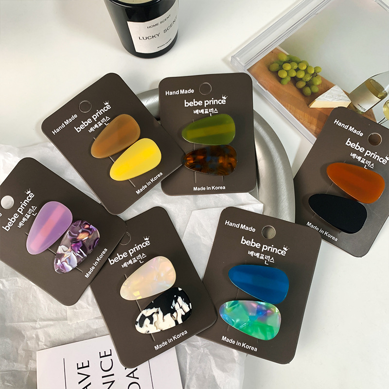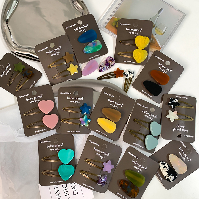 | nameOriginal | New textured acetate fashion contrast color love star bangs clip duckbill clip cute water drop side clip hair accessories |