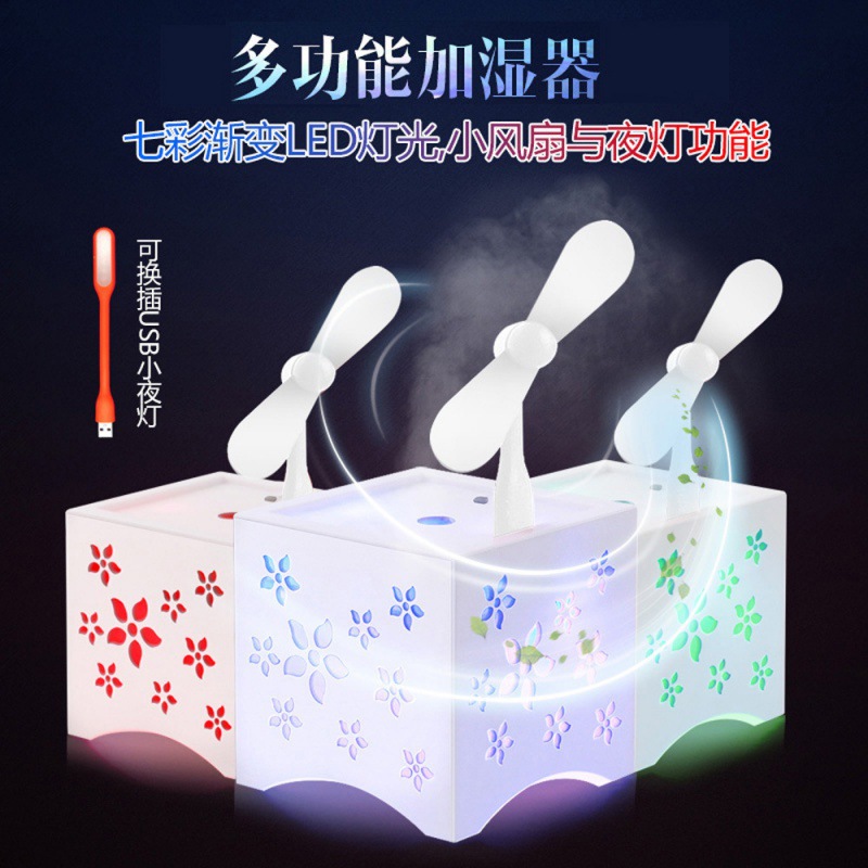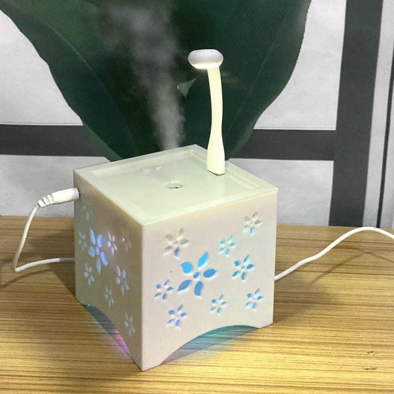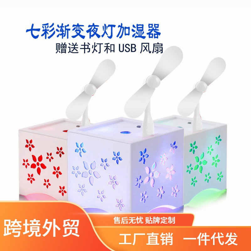 | nameOriginal | New three-dimensional square aromatherapy device colorful gradient night light ultrasonic hydrating humidifier send USB book light fan |