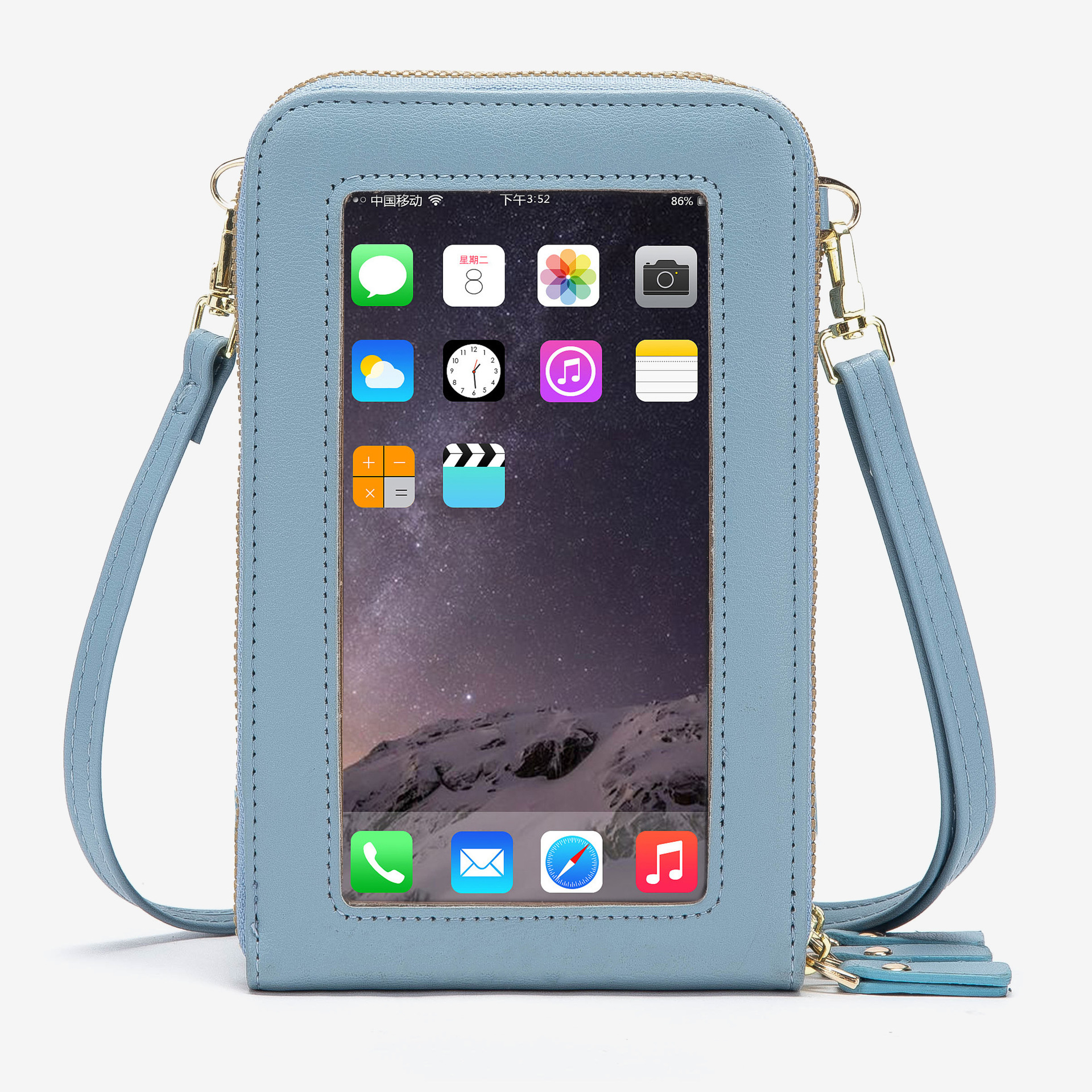New three-pull one-shoulder mobile phone bag candy color PU leather mobile phone bag large capacity touch screen coin purse women's crossbody bag