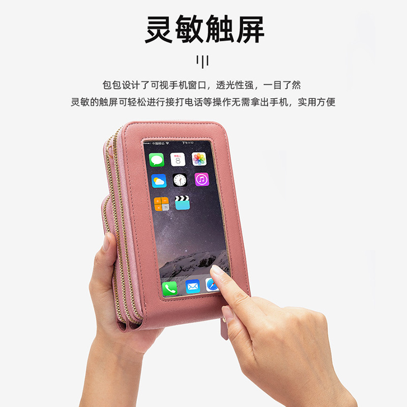 New three-pull one-shoulder mobile phone bag candy color PU leather mobile phone bag large capacity touch screen coin purse women’s crossbody bag
