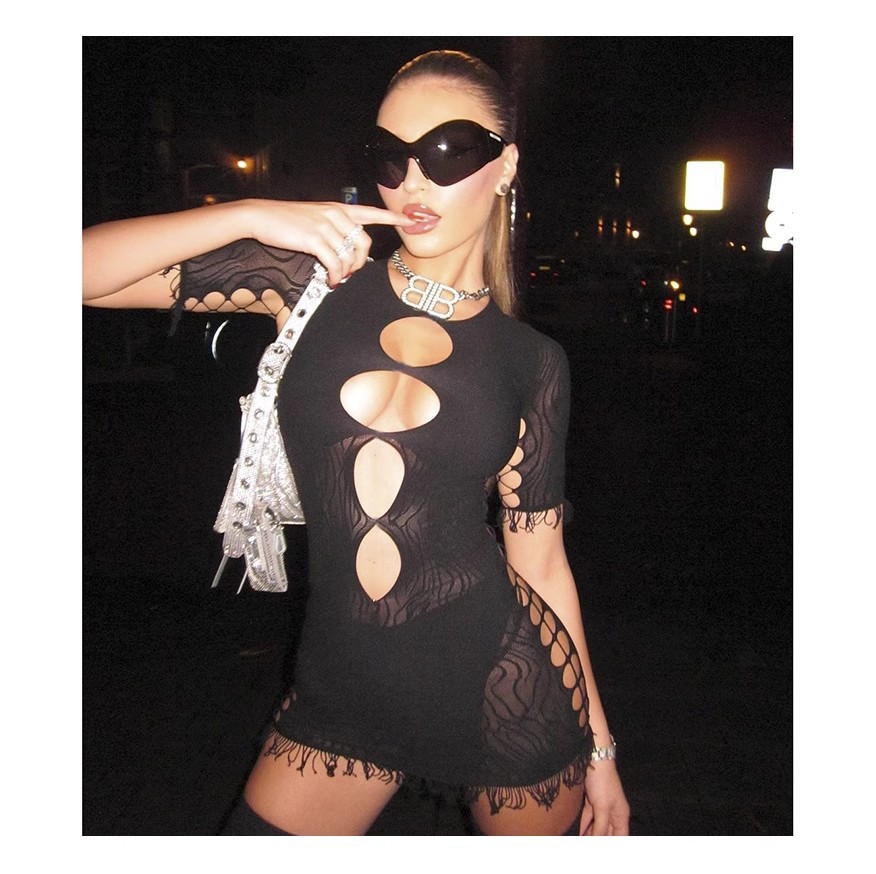 New tight off-shoulder bag hip mesh sexy temptation perspective fishing net free off uniform 0009