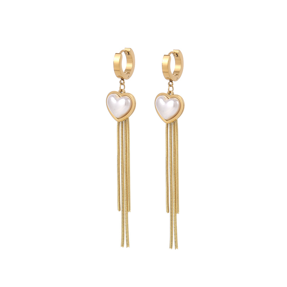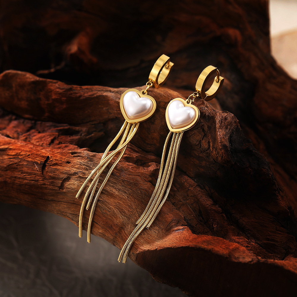 New Titanium Steel Ear Buckle Korean Elegant Long Tassel Ear Studs Instagram Style Women's Earrings Simple Geometric Pearl Earrings