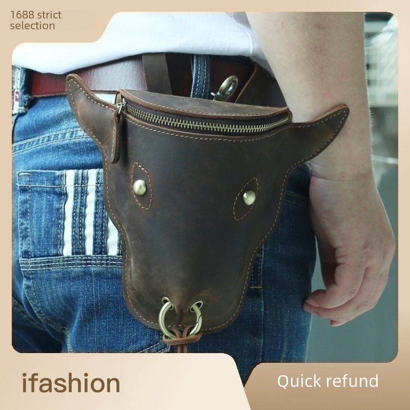 | nameOriginal | New Top Crazy Horse Leather Waist Bag Men's Retro Trendy Cool Cow Head Hanging Bag 7-inch Wearing Belt Mobile Phone Bag |