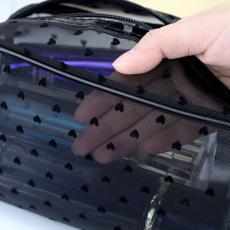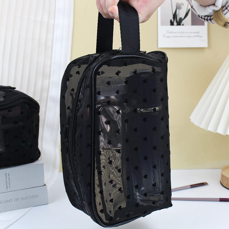 | nameOriginal | New transparent mesh love makeup bag cross-border Japanese and Korean girl wash bag makeup brush storage bag |