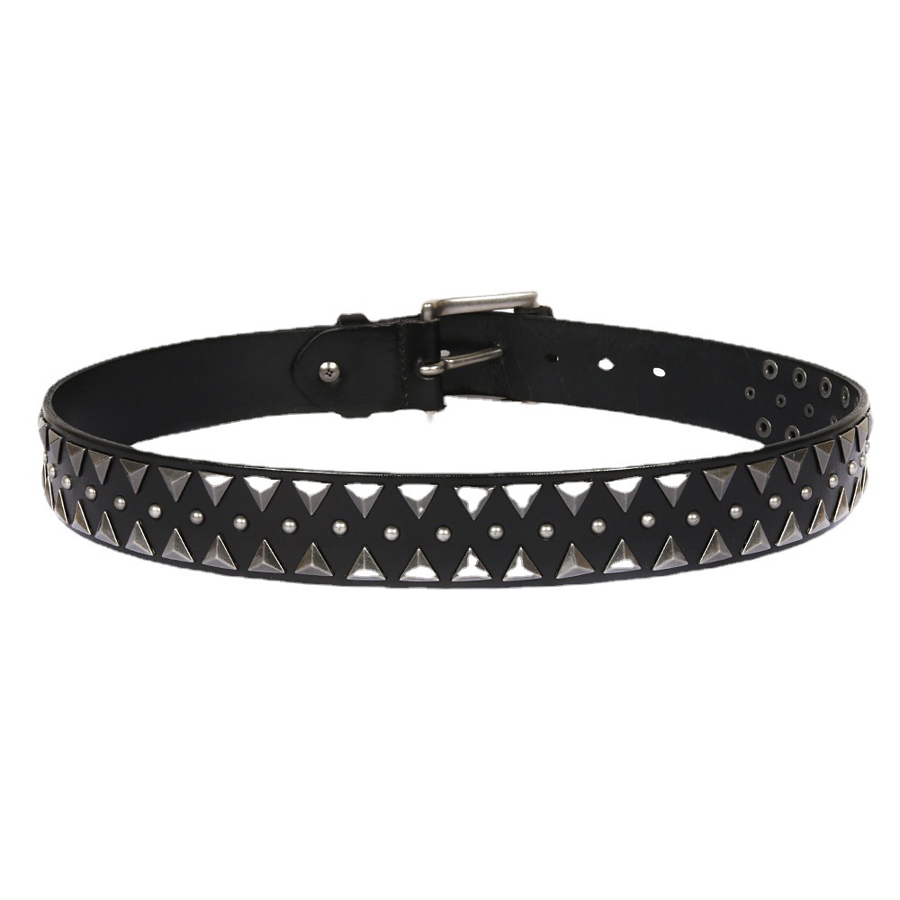 | nameOriginal | New triangle rivet head layer cowhide belt 3.8 wide men's and women's black denim belt factory wholesale |