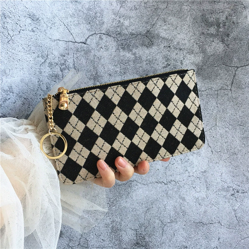 | nameOriginal | New ultra-thin coin purse women's long retro plaid zipper mobile phone bag exquisite card holder driver's license clutch bag |