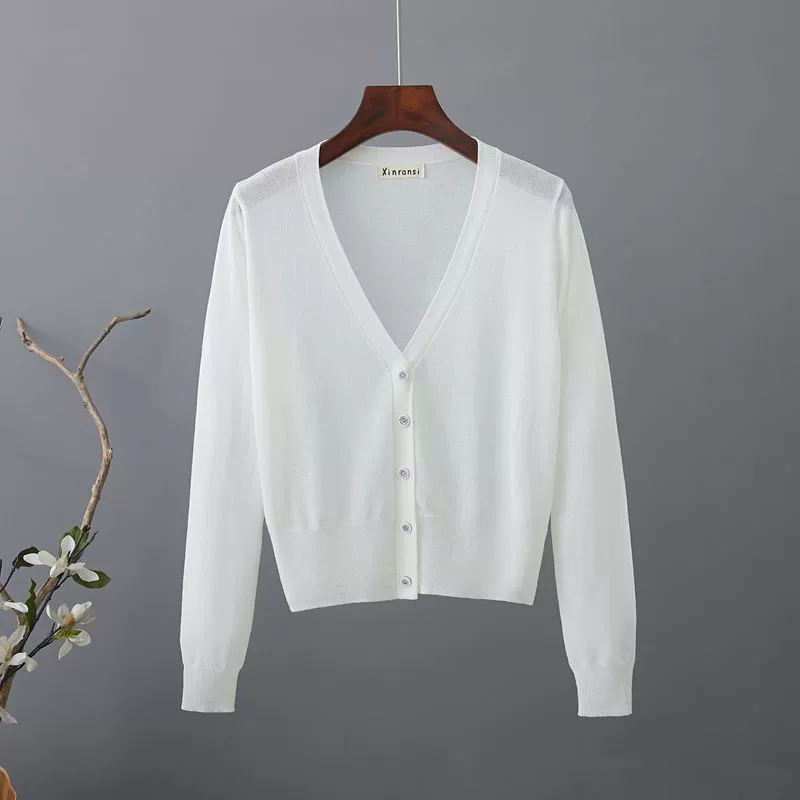 | nameOriginal | New V-neck ice silk thin knitted cardigan for women, summer skirt, sun protection shirt, versatile air-conditioned room shawl top |