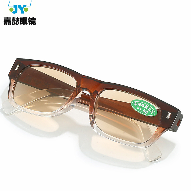 New vintage crystal reading glasses aspheric glass lenses gradually tea frame riveted Jianghu products old light mirror