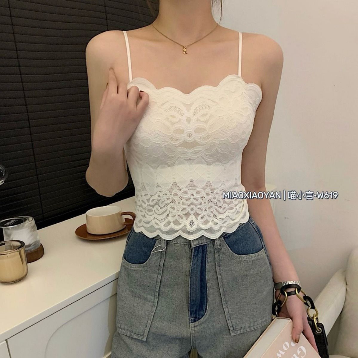 | nameOriginal | New W619 with chest pad lace small strap fixed cup without steel ring ladies beauty vest underwear bottoming tube top |
