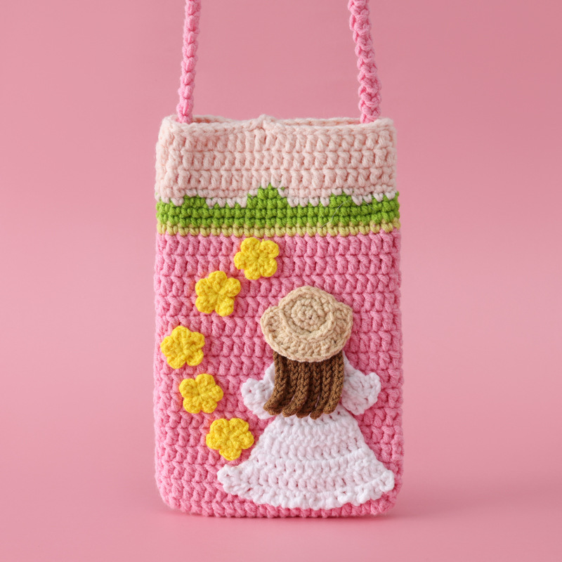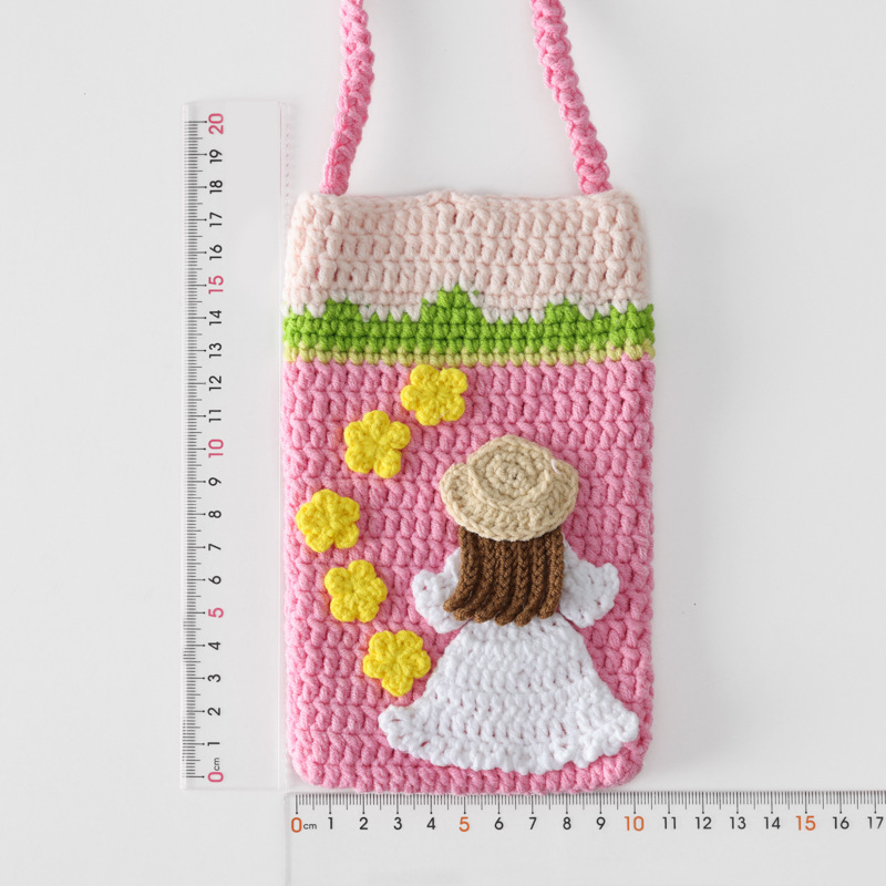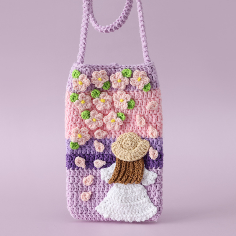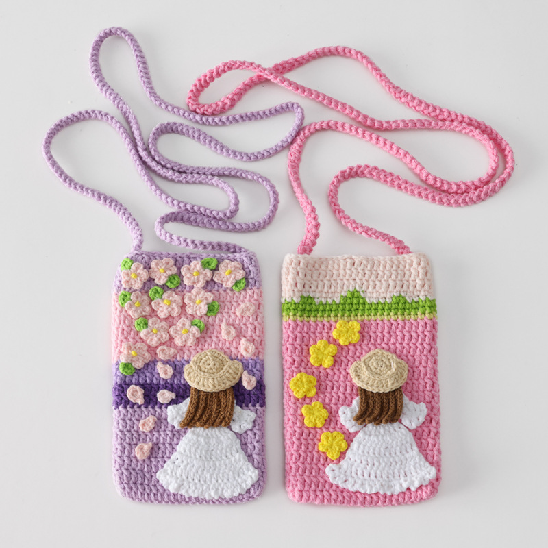 New waist bag finished pastoral style snow wool crocheted vertical oil painting Girl mobile phone bag messenger bag coin purse
