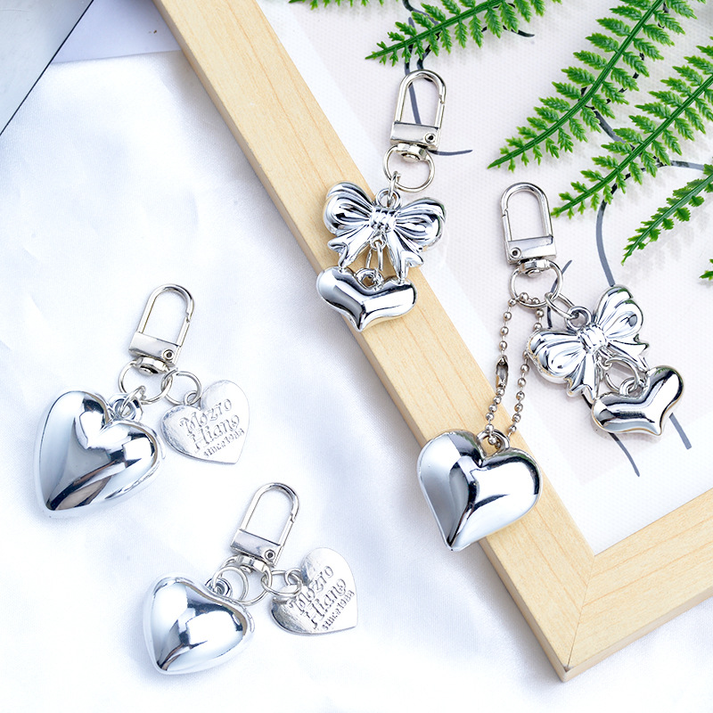 | nameOriginal | New white K silver love bow key chain pendant creative bead chain pendant mobile phone lanyard luggage accessories |