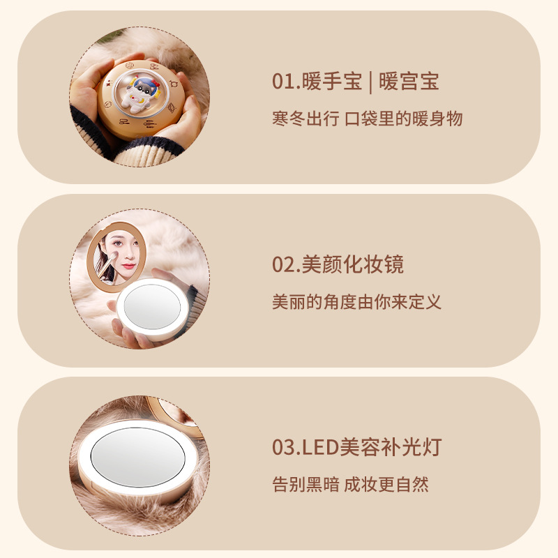 | nameOriginal | New winter hand warmer makeup mirror LED mini portable creative warm baby USB power three-in-one multifunctional |