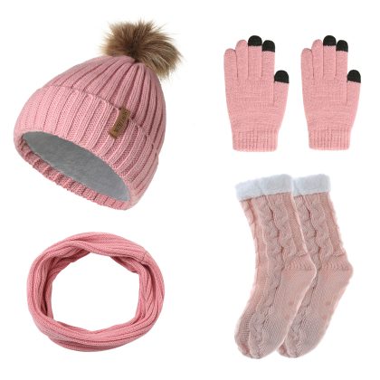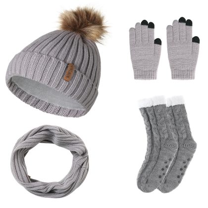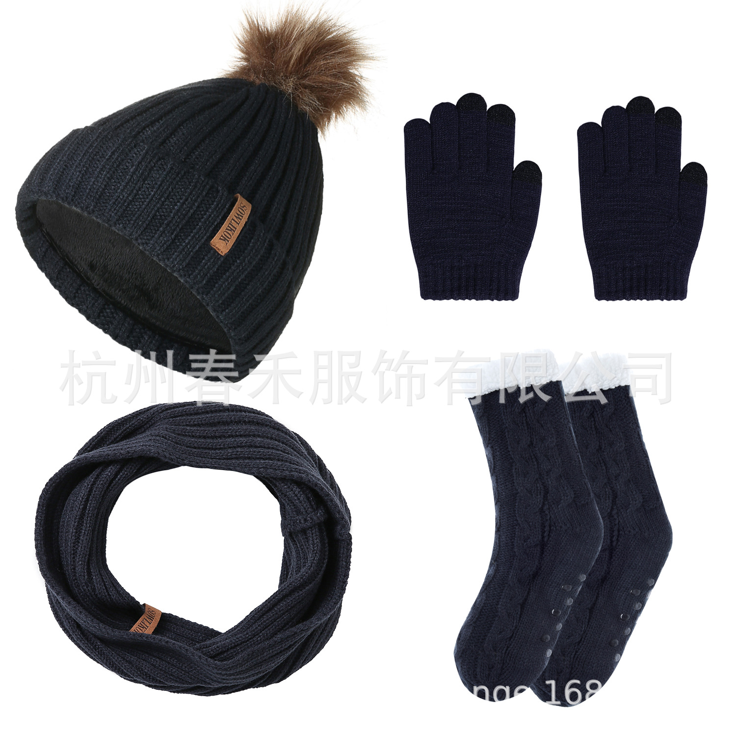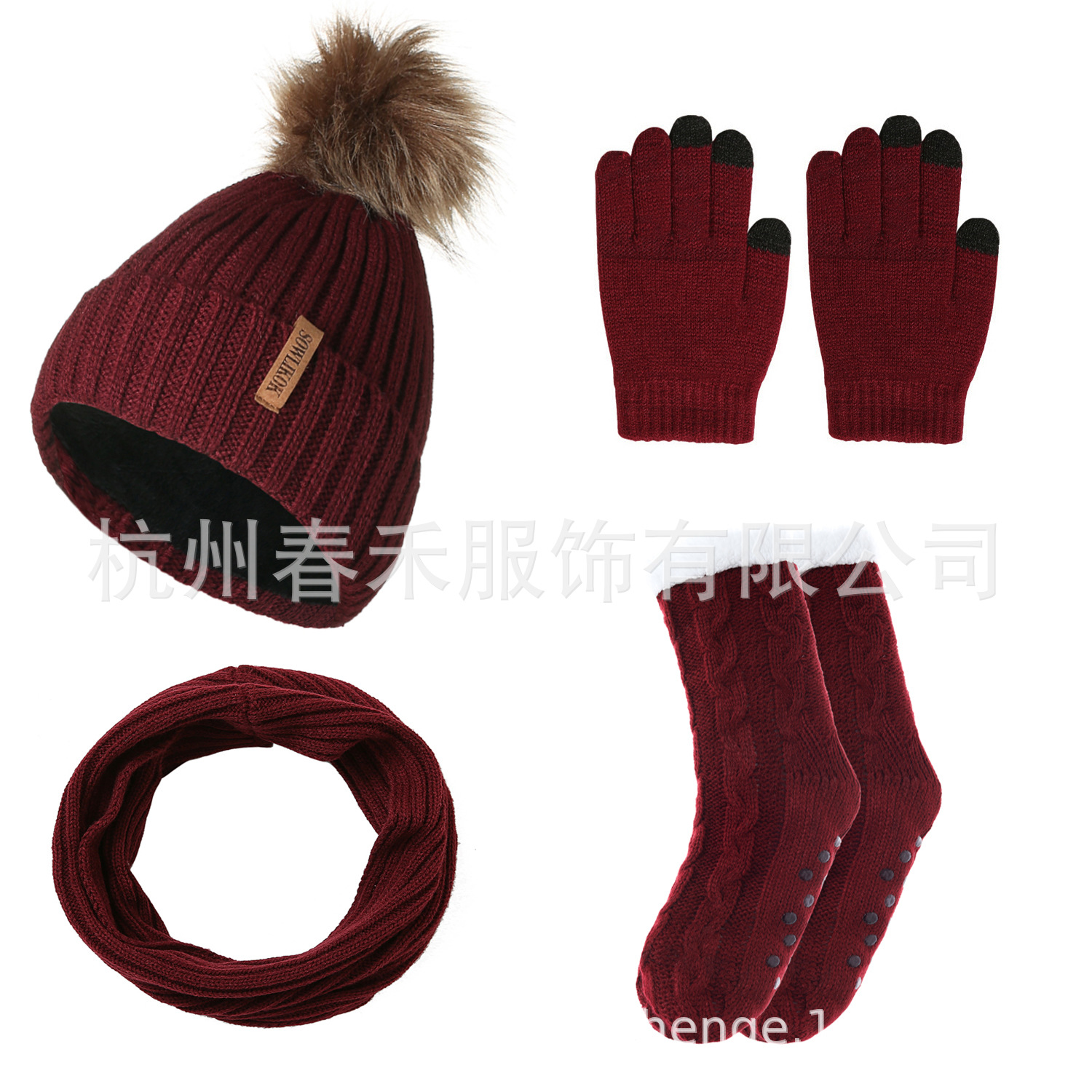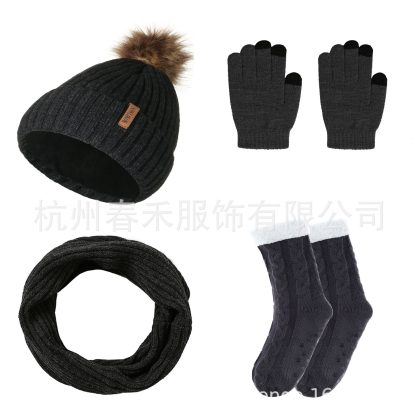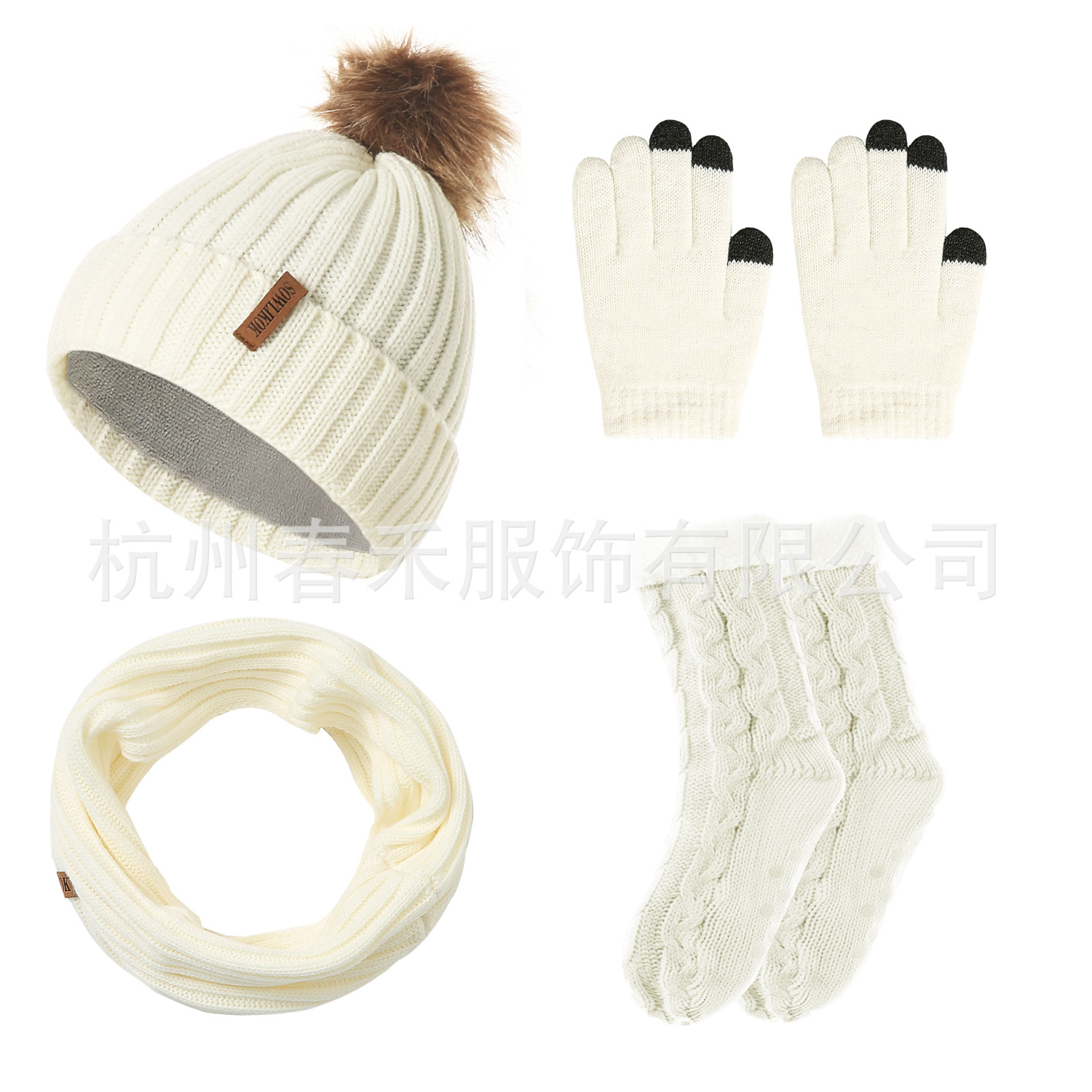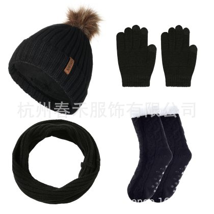 | nameOriginal | New winter women's fur ball hat scarf gloves socks 4-piece cross-border new Amazon |