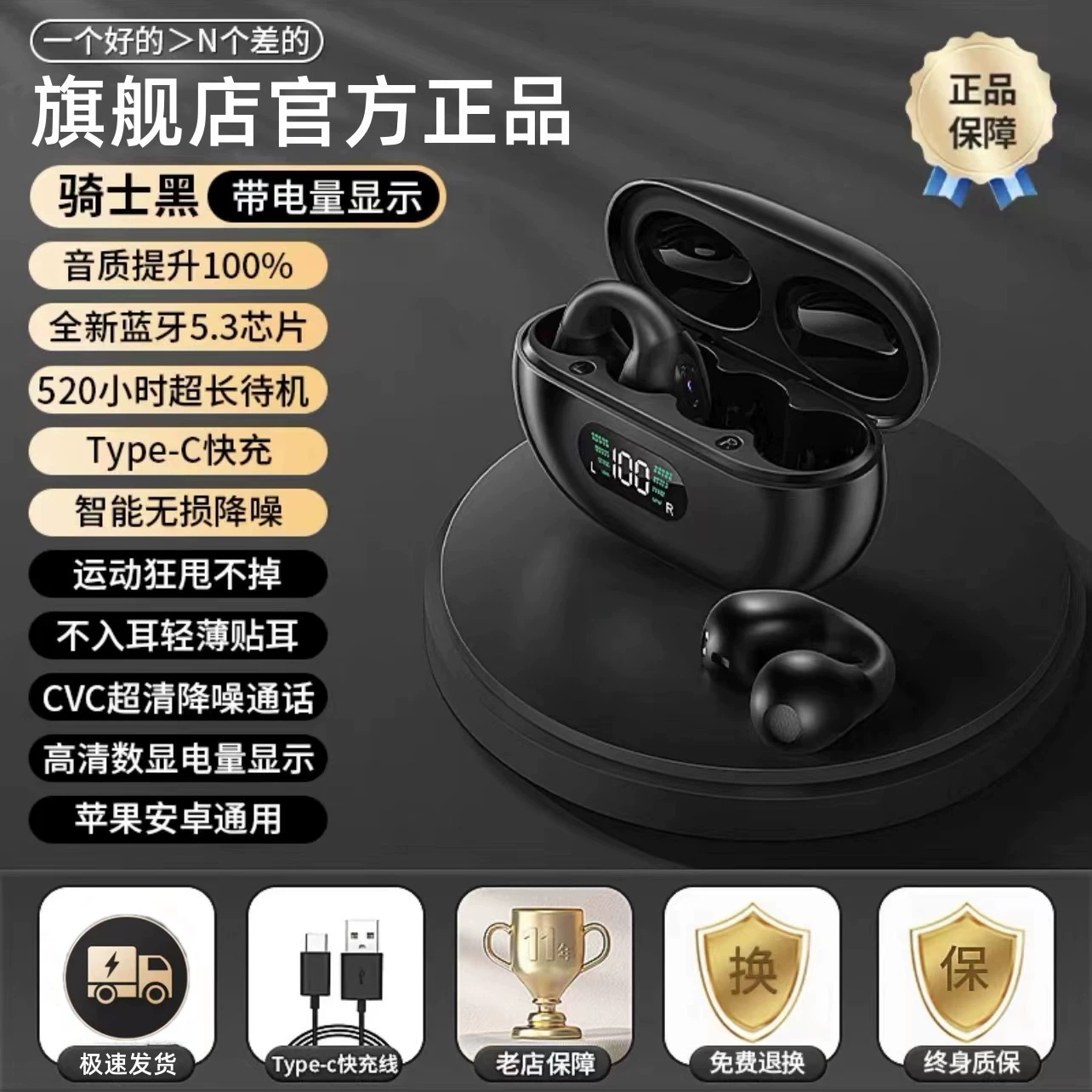 | nameOriginal | New wireless Bluetooth headset, bone conduction, non-in-ear, sports, noise-cancelling, high-quality gaming, ear clip type, compact for men and women |