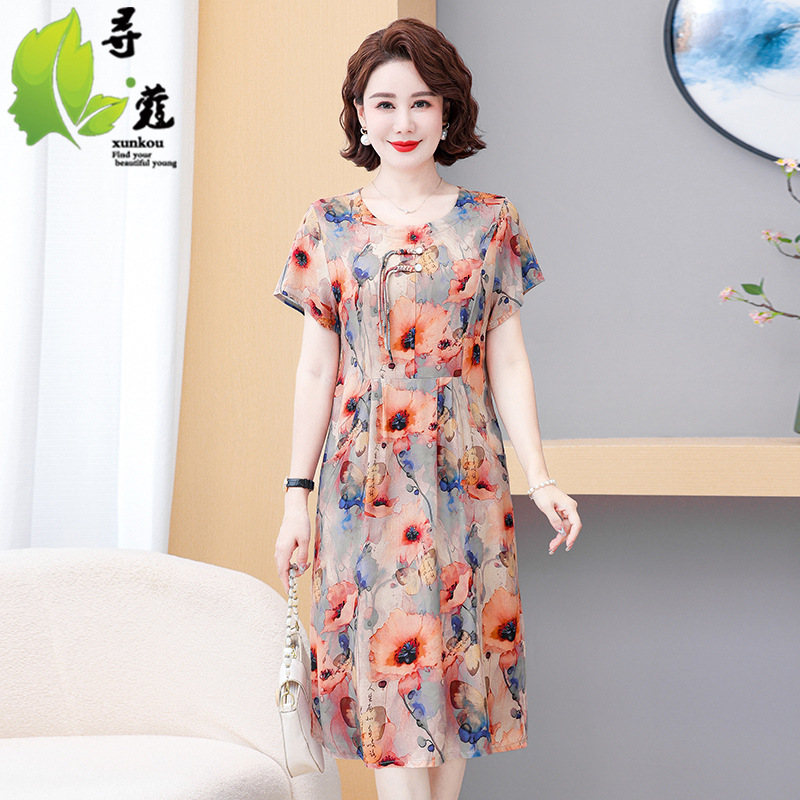 | nameOriginal | New Women's Clothes for Middle-aged and Elderly Summer plus size Clothes for Middle-aged Mothers Summer 50-year-old Printed Waist dress Women |