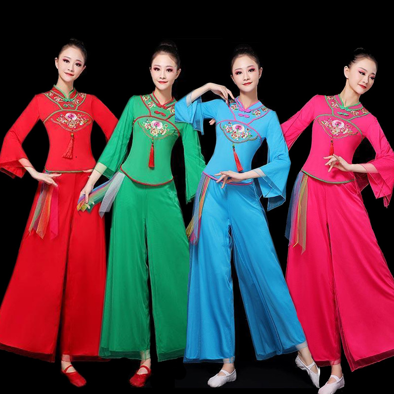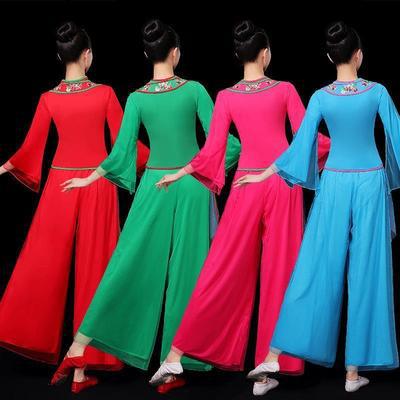 New Women’s Embroidered Dance Suit Long Sleeve Pendant Classical Dance Ethnic Square Dance Suit Spring and Summer Performance Suit